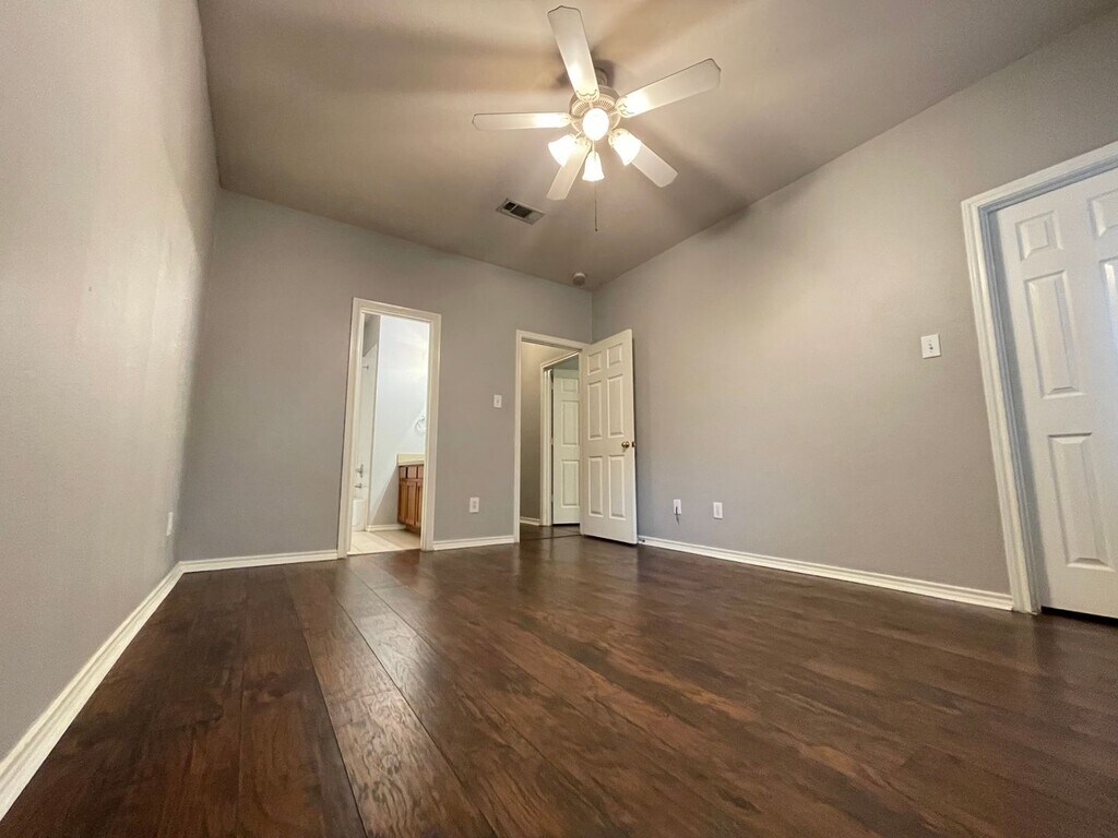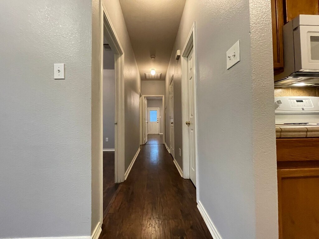 This duplex is open concept floorpan with large living room open to the kitchen with a breakfast bar. This home has full size washer and dryer connections and a 1 car garage with automatic opener. The bedrooms are all very nice size with plenty of closet space. This property has no carpet, hard wood floors and tile through out. There is also a small backyard.