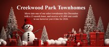 - Tis the Season to Save with our Limited Time Special for a December Move In - Receive a $1,000 Credit towards Rent when you sign a 15 Month Lease!