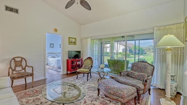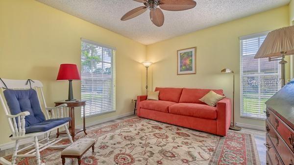 Nice quite community in Palm Aire at Woodlake Villas. This villa is bright with vaulted ceilings,nice atrium with plantings that greets you as you enter into the unit with so much natural lighting. The living room / formal dinning area has engineered wood flooring and a breakfast bar opening that views into the kitchen area. The guest bedroom is setup as an office with a queen pullout couch for sleeping quarters. The master bedroom has 2 twin beds that are easily converted to a king bed if needed. The master views out onto a green belt with views of the community heated pool. This unit has an enclosed lanai with sliding glass doors with screens that opens out onto a brick paver open porch for bird watching and sunning. Palm Aire is a wonderful walking community and close to lots of great features to enjoy. The UTC Mall is minutes away were you can enjoy lots of dinning options. This is an off season rental only from May 1 to Dec 31. This community is a 3 month minimum. MLS# A4602151