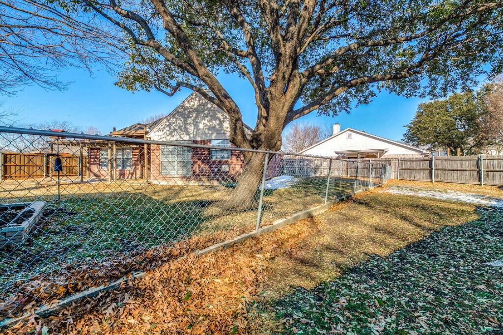 Beautiful 3 bedroom 2 bath brick home on cul-de-sac with huge cross-fenced backyard. This home features vaulted ceilings and large windows throughout for a bright and spacious vibe. Main bathroom features his and hers vanity, a garden tub, walk-in shower and walk-in closet. Natural wood cabinetry in the kitchen provides ample space for storage. Covered paved patio at the back with mature trees to provide shade in the summer.