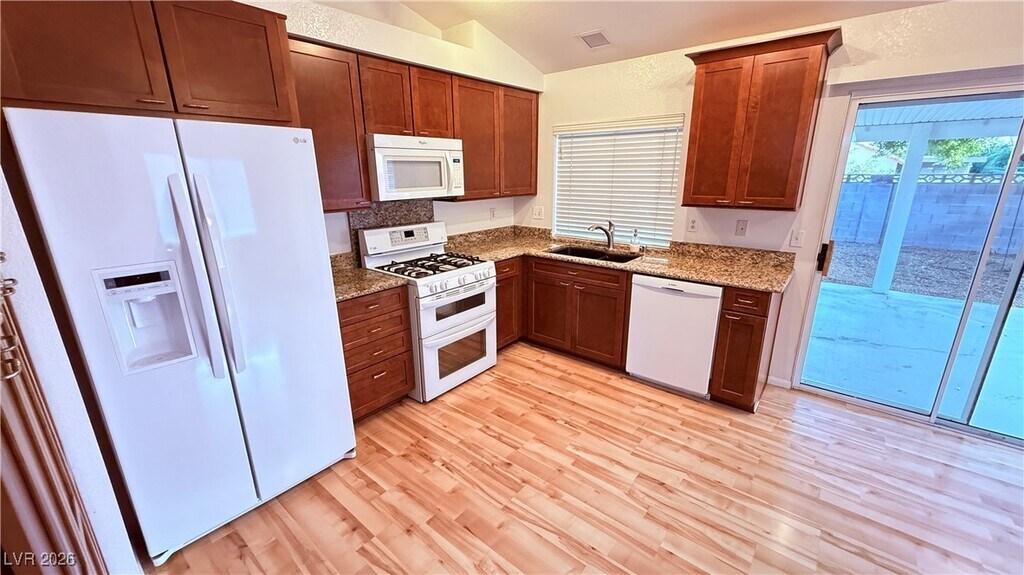 NW SINGLE STORY with RV PARKING! Cozy 3 BRs/2 baths /2 car garage, home features wood laminate flooring throughout (No carpet). Nice living area with fireplace and media/display area. Spacious kitchen with major upgrades and all appliances. Big master with double sinks and tub/shower combo. Great low maintenance backyard with full length covered patio. Small pets considered. 1 Year/1 Year+, One month rent deposit, Tenant is responsible to pay: gas, power, water, trash and $28 per month for sewer, Small pet considered with $25 per mo per dog, and $300 refundable deposit. No Smoking.