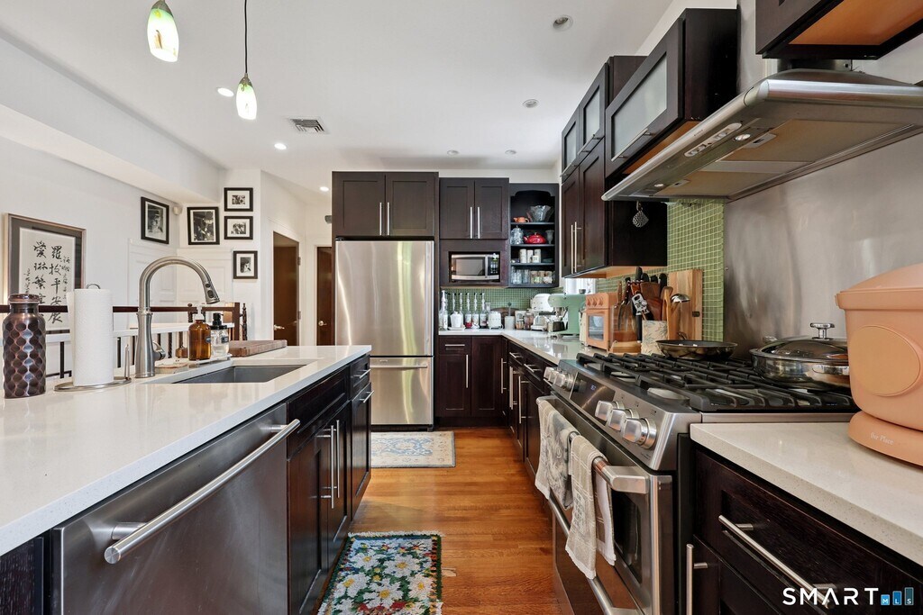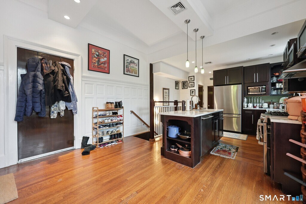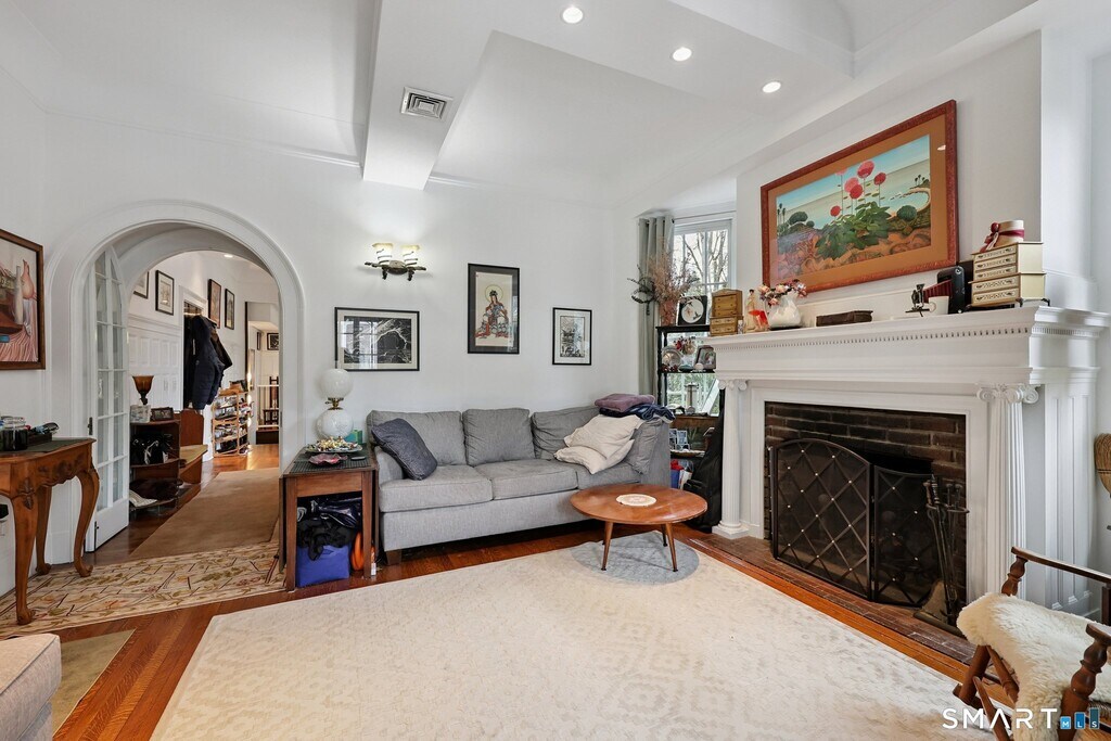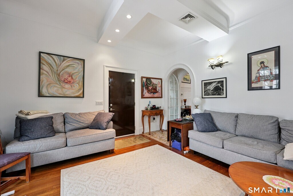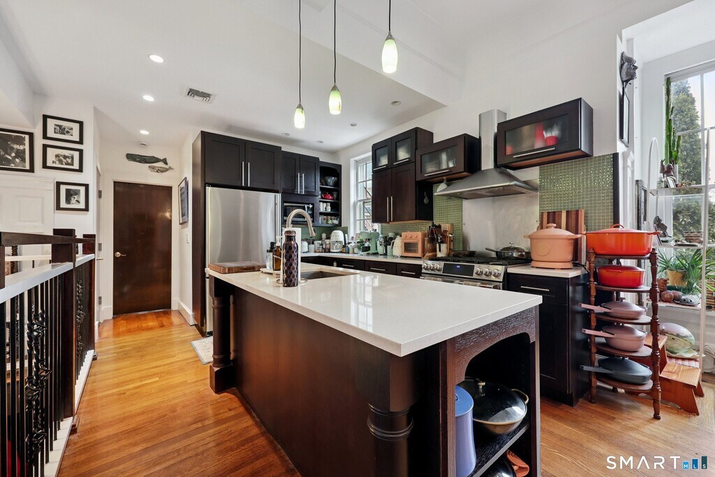 Call for Availability - Incredible East Rock location with this rare rental opportunity in the historic Alling House, an elegant 1850s residence beautifully converted to condominiums that blends timeless character with modern sophistication. This stunning two-bedroom, two-bath townhouse has been thoughtfully renovated and features soaring ceilings, exquisite moldings and woodwork, and oversized windows that fill the home with natural light. The living room showcases a charming fireplace, built-in bookcases, and French doors that open to a welcoming front porch. Rich hardwood floors lead to a custom designer kitchen featuring abundant cabinetry, center island, beautiful countertops, stainless steel appliances with gas stove, and a spacious dining area. The kitchen overlooks the living room, creating an open and inviting layout. A main-level bedroom with walk-in closet and beautifully designed full bath with dual sinks, rain shower, and multiple body jets complete the first floor. The lower level reveals a spectacular primary suite with exposed brick, gas fireplace, and luxurious spa-like bath with soaking tub, walk-in rain shower, and multiple jets creating a private retreat. In addition, the lower level includes a laundry area and additional storage. Enjoy the shared landscaped grounds with secluded patio and fire pit. Exceptional location just moments to East Rock Park, Yale University, Yale Shuttle, Science Park, and neighborhood cafes and restaurants. Excellent credit required. No pets MLS# 24158352