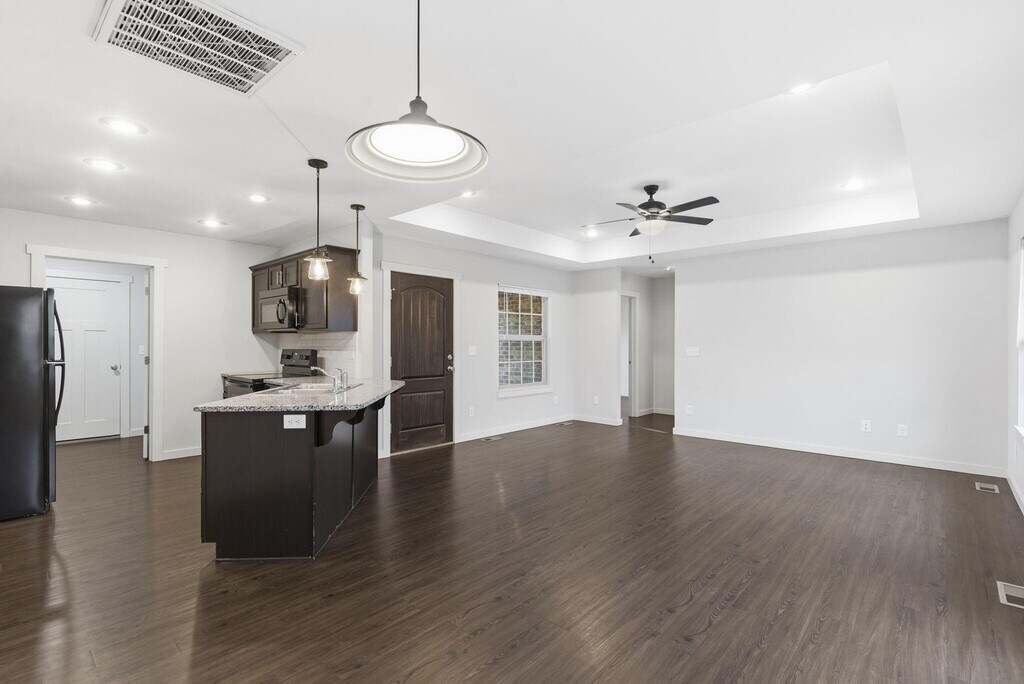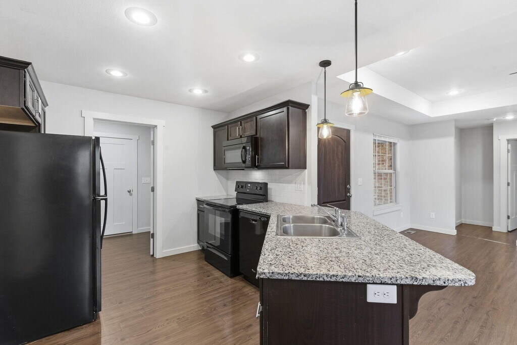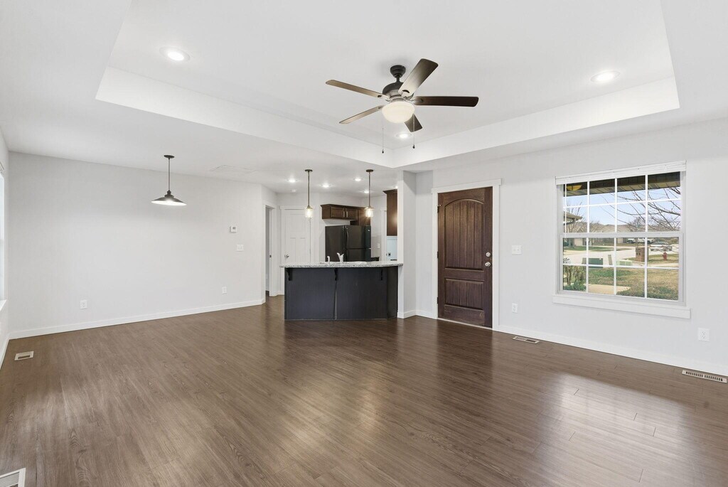 Discover comfort and convenience at 5910 N 23rd Street in Ozark! This charming 3-bedroom,2-bathroom all-brick home sits in the desirable Ozark School District and offers easy,quick access to Hwy 65. Step inside to an inviting open-concept living room with elegant tray ceilings,perfect for both relaxing and entertaining. The bright kitchen features granite countertops,black appliances,a bar for barstool seating,and an attached dining area--with a nearby laundry room for added convenience. The primary suite includes a private bathroom with a dual-sink vanity and a walk-in shower. Two additional bedrooms share a full hall bathroom,making this home functional for many living arrangements. Enjoy the outdoors on the back deck. A 2-car garage and low-maintenance brick exterior complete this fantastic rental offering.