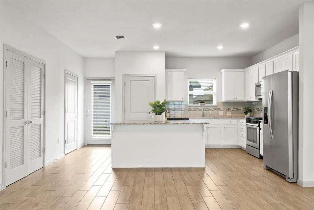 Step into this stunning contemporary condo built in 2018, spanning 1,840 square feet, and boasting 3 bedrooms and 2.5 bathrooms! The expansive family room has high ceilings, beautiful and durable wood-look tile flooring, and wonderful natural light. The modern kitchen boasts designer features such as a center island, granite countertops, tile backsplash, stainless steel appliances, and ample cabinet storage, perfect for cooking and entertaining. The large, open living / dining areas offer versatility and comfort for daily living and hosting guests and the half bathroom downstairs ensures a private upper living area while you are entertaining. ~ Upstairs, the primary bedroom serves as a serene retreat with its own private balcony overlooking the front yard - the perfect spot for a morning cup of coffee and your favorite plants! There are 2 large primary closets and an ensuite bathroom with ample space and luxuries such as a dual vanity and large walk-in shower. ~ Step outside to find your private, fenced backyard provides an ideal space for outdoor activities, gatherings and summer barbecues. A detached 2-car garage offers extra storage and parking convenience. ~ Located within walking distance of Onion Creek Metropolitan Park - one of the largest metro parks in the city - and the elementary school! Embrace the vibrant community of Goodnight Ranch, where amenities like a pool, splash pad, and greenbelt trails await your exploration. Easy access to major highways (I35, 183, 130), situated just 10 miles from the airport, downtown Austin and McKinney Falls State Park which offers great hiking, camping and biking. Whether you're seeking outdoor adventure or serene retreat, this condo invites you to enjoy the best of both worlds. ~ Don't miss this opportunity to lease this “turn-key†and move-in-ready home! Schedule a showing today! ~