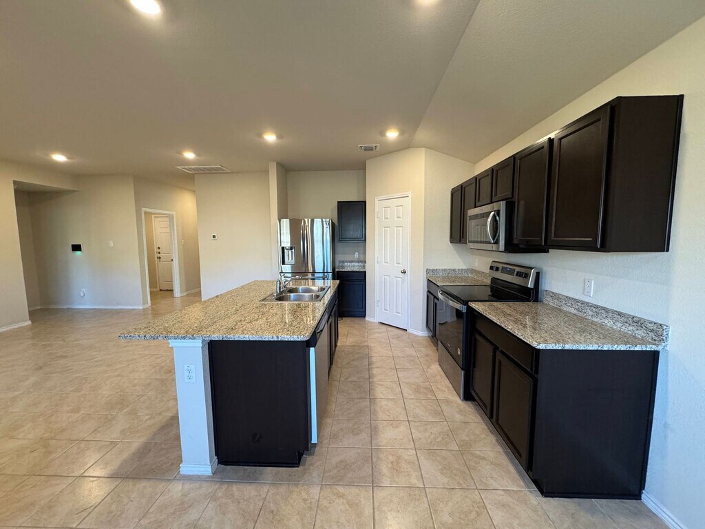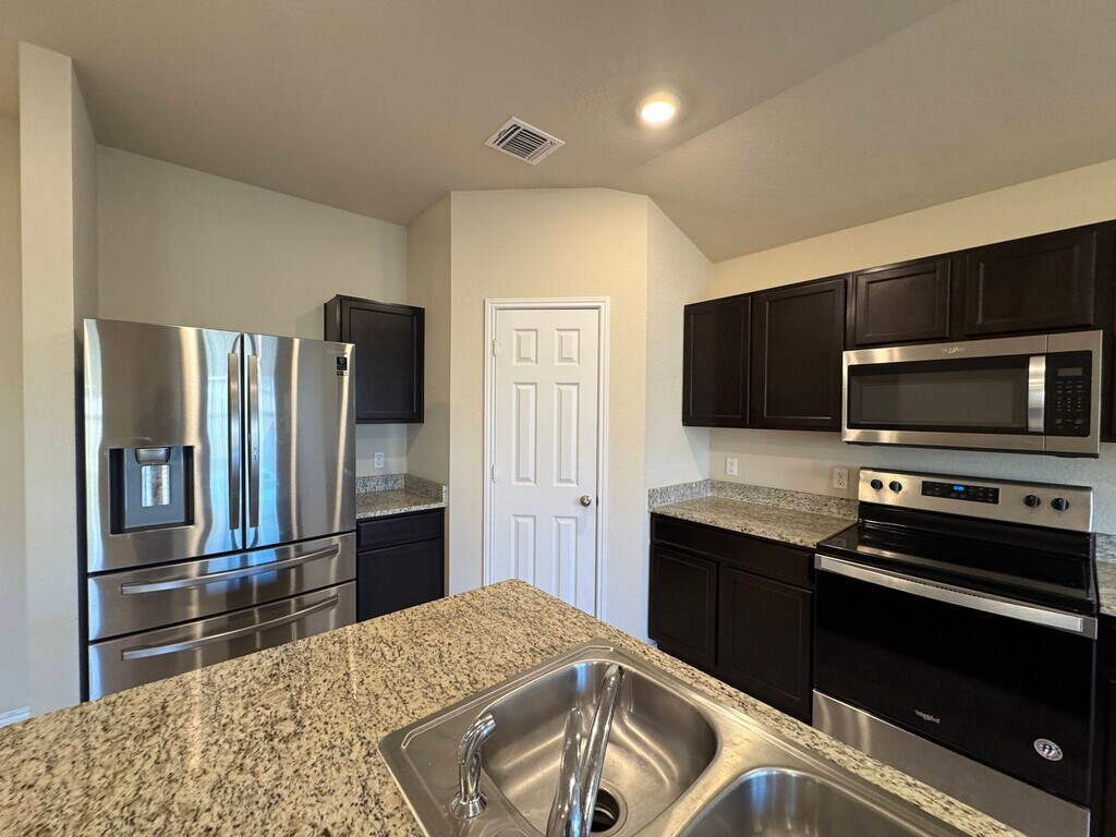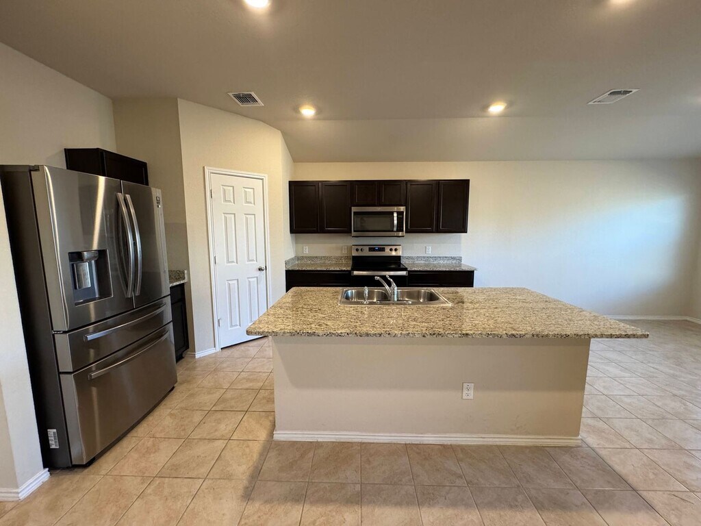 View 360° virtual tour: This 4-bedroom, 2-bath home for rent in Killeen offers a comfortable layout with a mix of ceramic tile and carpet flooring throughout. The kitchen and bathrooms feature granite countertops, and the kitchen is equipped with stainless steel appliances, including a dishwasher, glass-top stove, microwave range, and a side-by-side refrigerator with ice and water dispenser and bottom freezer drawer. Enjoy outdoor living with a covered back patio and fenced backyard. Additional features include an attached 2-car garage with extra driveway parking. Pet-friendly home. Appointments aren’t required to tour. Contact us or stop by our Killeen office to learn more and see this home in person once it becomes available! We are located at 1020 W Jasper Dr, Killeen, TX 75642. Disclaimer: The furnishings or enhancements shown are AI-generated and intended for inspiration only. They may not reflect the actual scale, condition, or current features of the property.