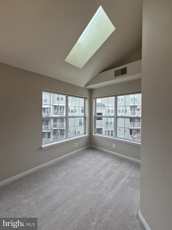Commuter friendly and move in ready, this bright top floor two level condo features three bedrooms and three full baths. The flexible 2-level layout includes two en suite bedrooms, including a spacious primary suite with a walk-in closet and jacuzzi tub, plus a third full hall bath ideal for guests or roommates. Vaulted ceilings, skylights, and a gas fireplace create an open yet inviting feel, while granite counters, ceramic tile, and GE slate stainless appliances provide modern comfort. Extra storage is located just outside the unit. Residents enjoy the community pool, clubhouse, and playground, with easy access to Holmes Run Trail, Sportrock, The St. James, and Franconia Park garden plots. Spacious, well located, and ready for its next tenant. Conveniently located one mile to Van Dorn Metro with direct access to National Landing and Amazon HQ2, and quick access to 495 and commuter routes.