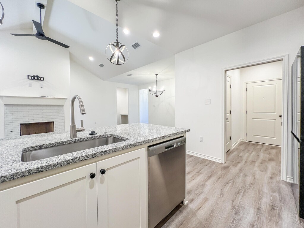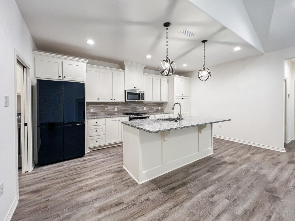 Come check out this great 3 bedroom 2 bathroom house in Northwest Lubbock! This home features an open concept and great large windows that allow for lots of natural light and make the space feel open and welcoming. The living room features a fireplace that makes a great statement piece for the space! The kitchen features a large island,granite countertops,and lots of modern finishes that make the home feel elevated. Home also features great sized bedrooms and a fantastic master suite with a great accent wall in the bedroom! Vinyl plank floors throughout the common areas! This house comes with a good sized backyard and a great patio that would make the perfect place for entertaining,or relaxing after a long day! Call today to schedule a tour before it's gone! Available 10 days from application approval. Schools: Legacy Elementary School,Terra Vista Middle School,Frenship High School Small Dogs Considered (2) $300 deposit per pet.