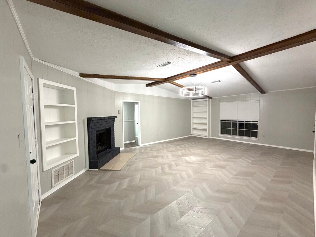 Modern design with everyday comfort—crafted for tenants who value quality, space, and intentional living. Step inside to an open, light-filled living area featuring custom herringbone-style flooring, exposed ceiling beams, and upgraded lighting that creates a warm, upscale feel from the moment you enter. The layout flows effortlessly, making it ideal for both entertaining and unwinding after a long day. The kitchen delivers bold style and function with sleek dark cabinetry, gold hardware accents, generous counter space, and full-size appliances—designed to feel elevated yet practical. Built-in storage throughout the home adds convenience without sacrificing aesthetics. Both bathrooms have been thoughtfully refreshed with modern vanities, contemporary fixtures, and clean neutral finishes, offering a spa-like experience at home. Each of the three bedroom is generously sized, complete with LED lightening and ample natural light. Wrapped in a classic brick exterior, this home offers durability, charm, and curb appeal. ?? Please call to check availability before submitting an application. ?? ?? www.kaymac.co ?? ext. 1