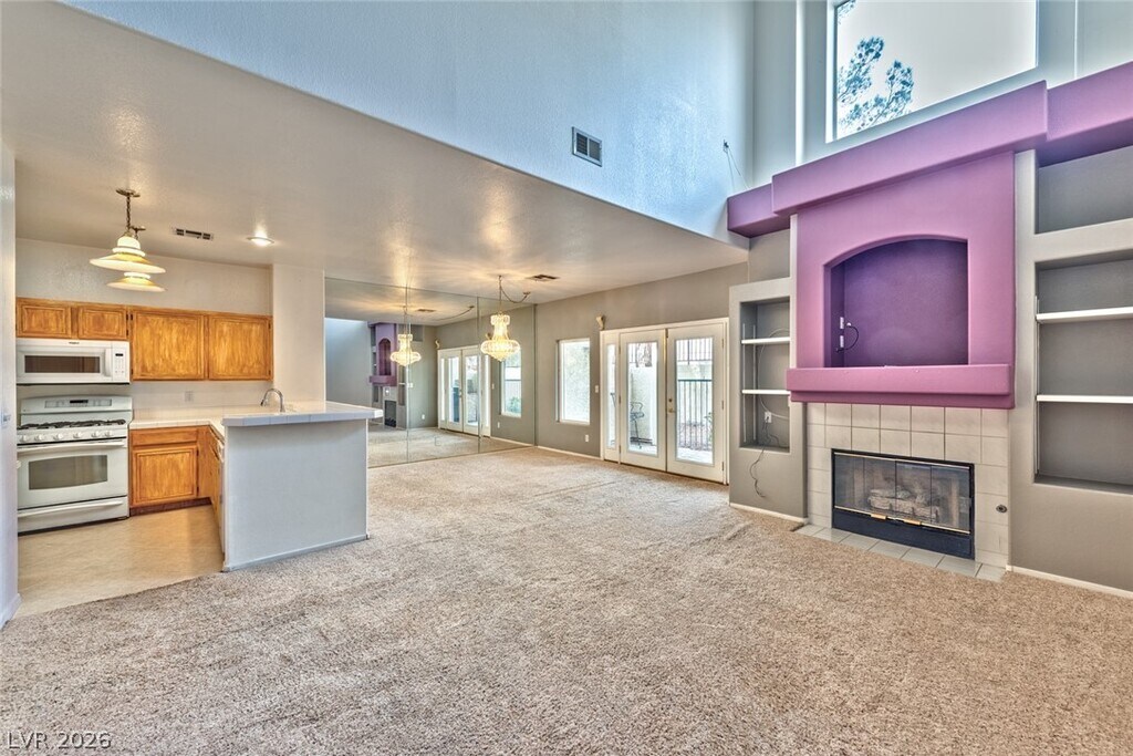 Beautiful 2-bedroom, 3-bath townhome in a desirable gated community in Las Vegas. Ideally located near major shopping centers, restaurants, K-12 schools, and family-friendly parks and trails. Enjoy resort-style community amenities, including a sparkling pool and relaxing spa. The open living and dining area features vaulted ceilings, a cozy fireplace, a custom entertainment center, and direct access to the backyard—perfect for entertaining or unwinding at home. The kitchen offers a breakfast bar, ample counter space, and a pantry for added convenience. The spacious primary suite includes a custom mirrored closet and a private bathroom with double sinks and a shower/tub combo. This stunning home is a must-see and won’t last long!