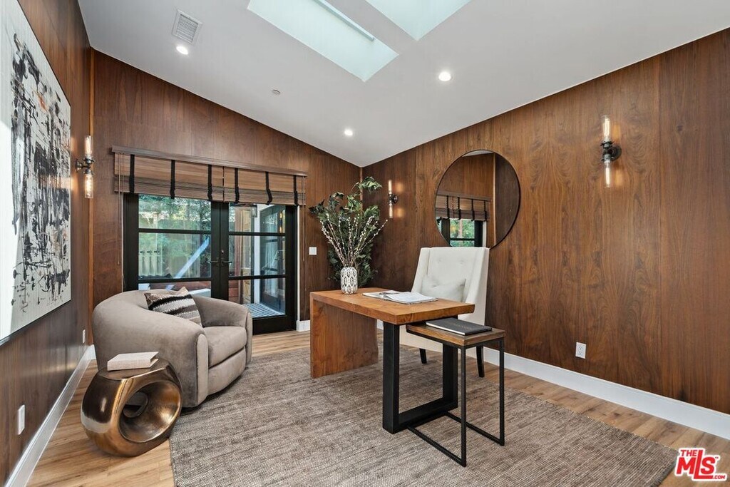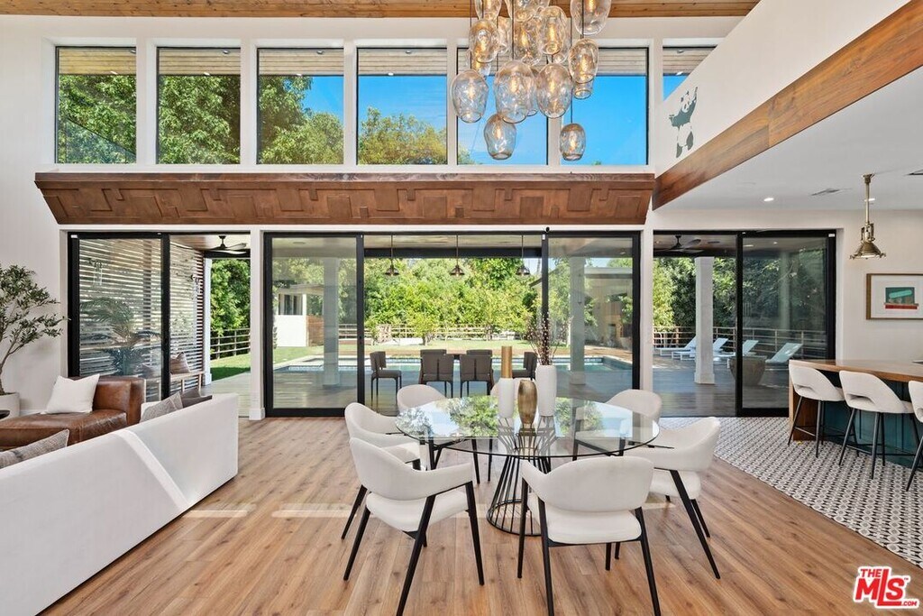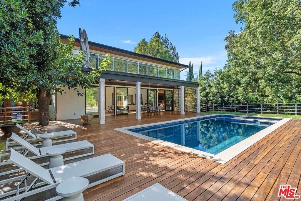 Newly constructed in 2019, this custom architectural masterpiece blends striking design with resort-style living in the heart of College Acres, one of the most coveted neighborhoods in Woodland Hills. Set on an expansive 18,000+ sq ft lot, this 5,034 sq ft home offers 5 bedrooms and 4 baths, thoughtfully designed for both entertaining and everyday comfort. A dramatic atrium entry introduces soaring 24' ceilings in the family room, seamlessly connecting to the open-concept chef's kitchen and a wall of glass that frames the entertainer's dream backyard. Outside, enjoy a heated swimmer's pool with oversized spa, a sprawling wood deck, and a garden structure with 14' ceilings, perfect as a creative studio, play space, or entertaining area. The home's versatile layout includes a loft workspace with a spacious balcony overlooking the grounds, expansive walls for art display, and multiple areas that inspire both productivity and relaxation. The primary suite is a true sanctuary, featuring dual walk-in closets, a spa-inspired bath with steam sauna, and luxurious finishes throughout. Two additional en-suite bedrooms offer private climate controls, while two flexible bedrooms can double as home offices with oversized glass doors opening to a tranquil Zen patio. Additional highlights include a full-size laundry room, direct-entry oversized 2-car garage, and a double-gated circular driveway accommodating up to 8 cars. This stunning, gated Candy Cane Lane" residence defines the very best of SoCal living, where modern design meets comfort, privacy, and endless opportunity for entertaining." MLS# 25613947