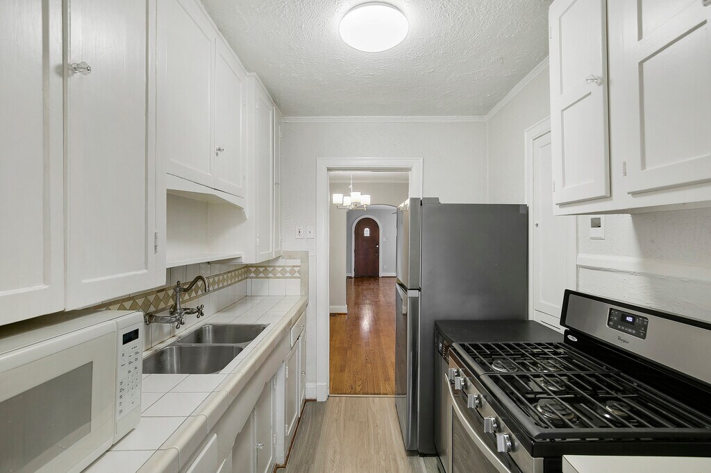 Classic lower four plex unit featuring hardwoods, and granite countertops, covered parking, stainless appliances, stackable washer and dryer, covered parking and more. Very nice!