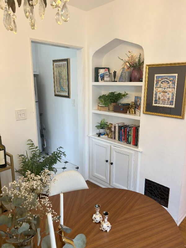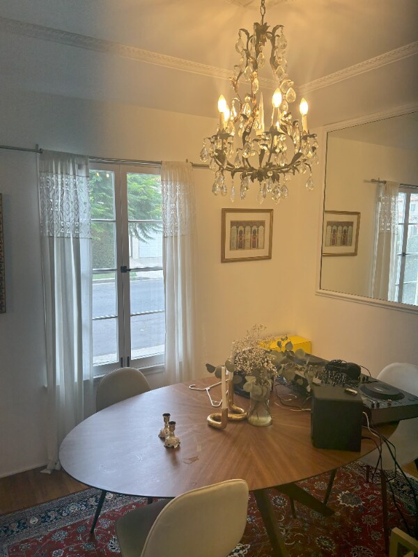 Property Id: 2399749 Unit / Property Details • 2 Bedroom / 2 Bathroom multi-level townhouse • Located in a 1930s French Normandy building • Faux fireplace in living room • Beveled stained-glass window • Separate formal dining room • Turquoise Art Deco-tiled kitchen • Hardwood floors throughout • Crown moldings • Period chandeliers and wall sconces • Two generously sized upstairs bedrooms • Sculpted “wedding cake” wall detailing • Primary bedroom with French turret nook (ideal for desk or reading area) • Main bathroom with separate bathtub and shower • Second bathroom with clean white palette Location • Situated on a quiet cul-de-sac in Hancock Park • Surrounded primarily by single-family homes • Minutes to Larchmont Village dining and shopping • Near the original Los Angeles Farmer’s Market • Close to Trader Joe’s, Target, and Rite Aid • Pedestrian-friendly neighborhood Additional Information • On-site washer/dryer • Dishwasher • Optional parking • Unfurnished