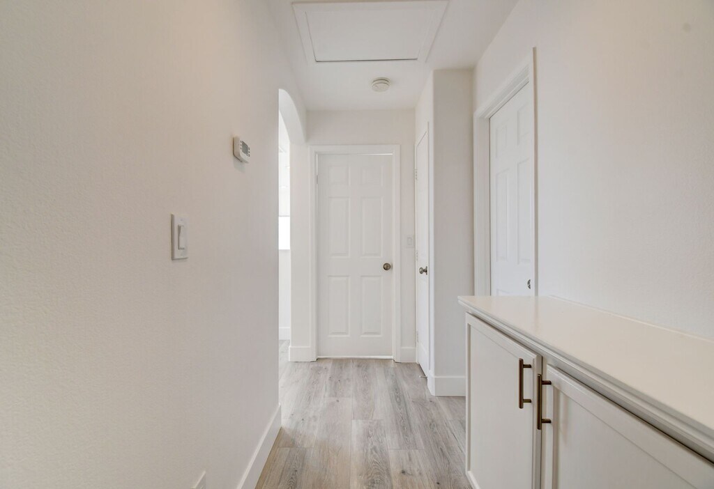 This newly renovated Las Vegas rental home stands out with two individual one-car garages flanking the elegant front entrance. Once inside, you will discover three bedrooms and two-and-a-half baths. The charming living room includes lovely vinyl plank floors and a ceiling fan for comfort. Sliding glass doors lead out into a fenced-in backyard with beautiful landscaping. A formal dining area is bright and cheerful with two substantial windows. The kitchen remains just off of this area with a built-in pantry, natural wood cabinetry, and modern stainless steel appliances. A wonderful master bedroom provides a roomy walk-in closet for storage, stunning vinyl plank floors, and an attached master bathroom for convenience. Schedule a tour today.