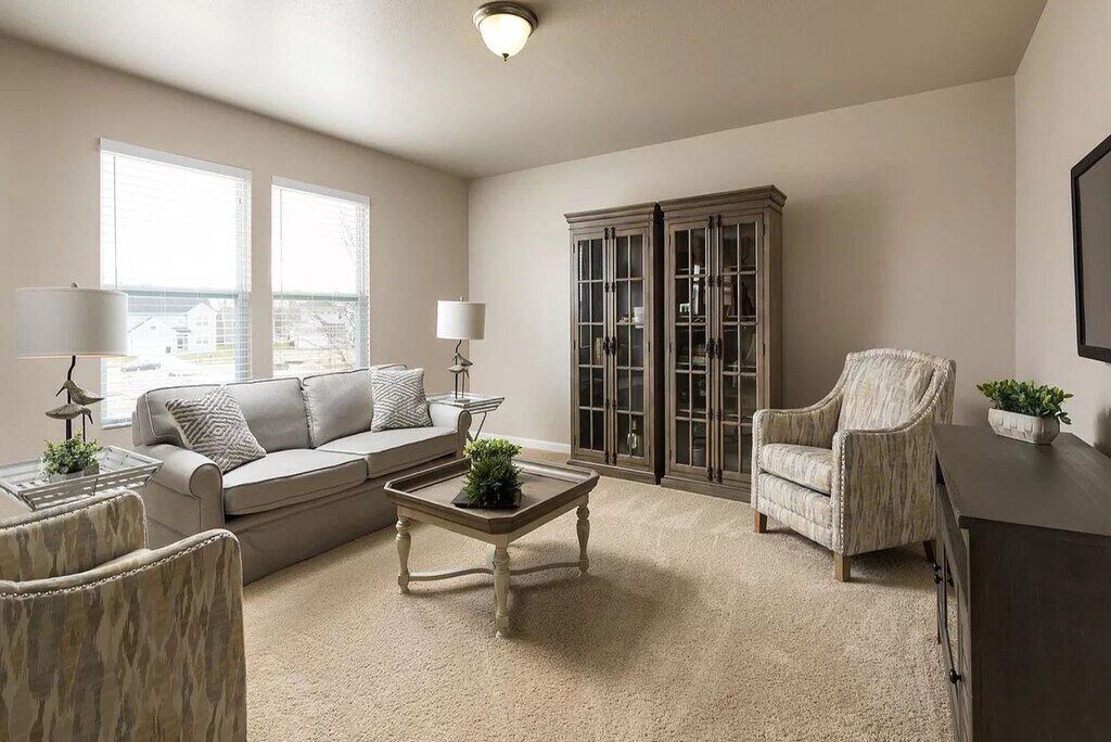 A beautiful 3-bedroom, 2-bathroom home is perfect for those who love spacious and open living. From the moment you step inside, you'll be greeted by a beautifully designed interior that features high-end finishes, vaulted ceilings, and plenty of natural light. The living room is perfect for entertaining guests or relaxing with family, and the adjacent dining area is ideal for meals with loved ones. The kitchen is a chef's dream come true, with state-of-the-art appliances, and ample cabinet space. The bedrooms are generously sized and offer plenty of storage space, and the master bedroom comes with its own en-suite bathroom, complete with a luxurious soaking tub and walk-in shower. Outside, you'll find a spacious yard that is perfect for outdoor activities and barbecues, with plenty of room for gardening or just relaxing in the sun. A two-car attached garage provides plenty of parking and additional storage space. Located in a quiet and friendly neighborhood, this property offers a serene retreat that is still close to all the conveniences of city living. Just a short drive away from shopping, dining, and entertainment options, as well as parks and schools, this location is ideal for families. This home is built with an Energy Smart HERS rating of 58, allow you to save on average $2,224/yr compared to an old rental, putting more money in your pocket to indulge in Starbucks approximately 794 times a year (or how you see fit). Homes are reserved on first serve with signed lease, act quickly. Patios, decks, and sliders differ depending on lot orientation ****$250 processing fee**** **** A month and a half Tenant Deposit**** **** Pet-friendly home! Pets are $100 upfront and $25/mo**** ***Lease price is for a 24-month lease. 12-month lease available at $100/mo premium*** **Pictures are stock photos and colors may vary** ***Patios, decks, and sliders differ depending on lot orientation*** *Homes Reserved on a first come first served basis, so apply online at GreatLakeRealty dot com*