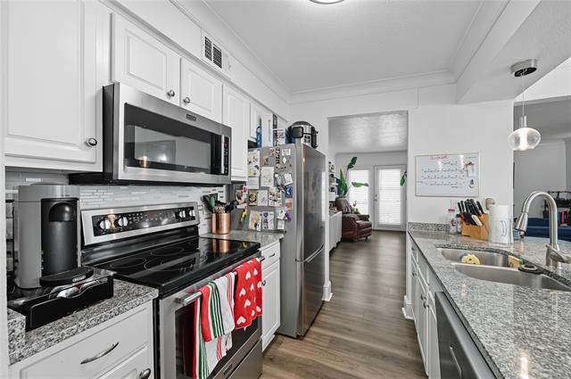 Updated condo featuring a spacious living area that flows seamlessly into the kitchen and dining space. The living room opens to a private balcony with views of the sparkling pool, perfect for relaxing or entertaining. The large primary suite offers a walk-in closet, a stunning en suite bath, and its own private balcony. The second bedroom is bright and sunny, also boasting a generous walk-in closet. Enjoy the resort-style pool just steps away, ideal for unwinding or gathering with friends. Conveniently located close to Greenville with all of its fabulous restaurants and shops, and just minutes from SMU.