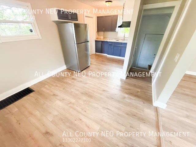 Step into this completely renovated 2-bedroom, 1-bathroom home featuring fresh paint throughout and new flooring. Enjoy relaxing on the charming front porch that welcomes you into a bright living room with a stunning decorative fireplace. The updated kitchen includes a refrigerator and will soon feature a brand-new stove! The unfinished basement offers great additional space for storage, crafts, or hobbies. Upstairs, you’ll find two spacious bedrooms with ample closet space. The larger room is big enough to accommodate a home office, workout area, or extra lounge space. A detached garage provides added convenience and secure parking. This beautiful home blends comfort, charm, and modern updates, ready for you to make it your own! ?? Ready to move in? Apply today at the ALL COUNTY NEO website! Additional Information ?? All Housing Vouchers Accepted ?? No Pets Allowed ? Gas & Electric must be in tenant’s name prior to lease signing with account numbers provided ?? Water/Sewer will be added as additional rent when due Electric Dryer Hookup Gas Gas Stove Heating Forced Air Refrigerator Provided