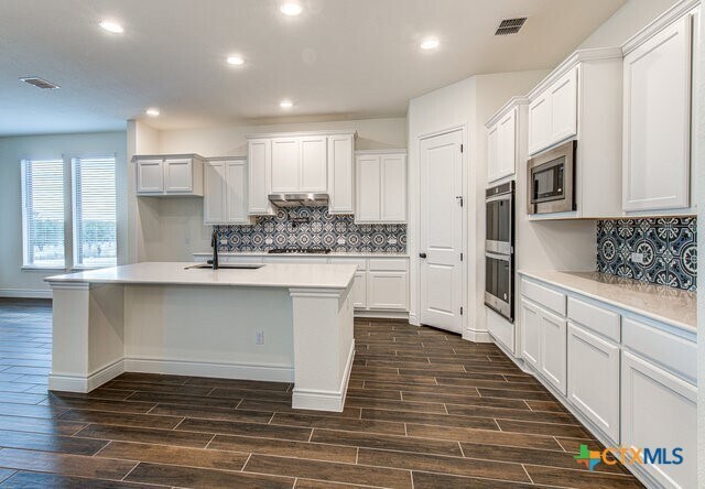Brand New 5 bedroom/3 bath Home in Vintage Oaks! Single story with large windows/lots of light and dark wood grain tile in living/kitchen and bedrooms. Kitchen includes center island/granite counters,double oven,refrigerator,gas cooking. Media room comes pre-wired. Master bath with his & her vanities,soaking tub,walk in shower. Includes laundry room with washer/dryer,water softener,3 car garage with mud room,covered porch and fenced backyard with beautiful shade tree. Vintage Oaks offers resort-style amenities that include pools,lazy river,sauna,clubhouse,trails,fitness center,parks and more.