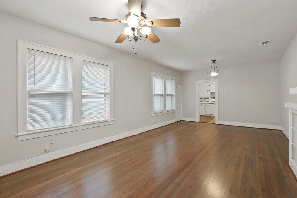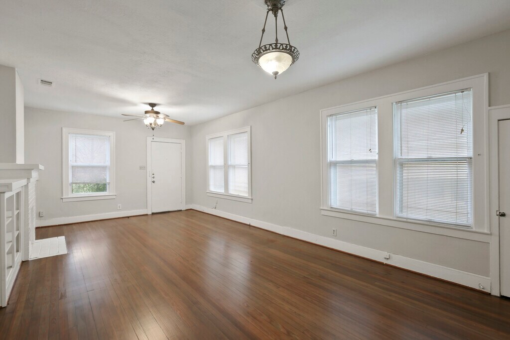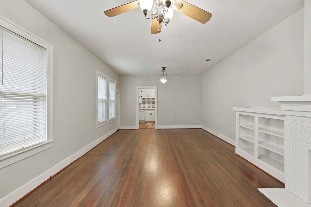 Really cute side-by-side one bed, one bath duplex. Built-ins in the living room, lots of windows, an open kitchen, decorative lighting, and hardwood floors throughout. Fenced in backyard!