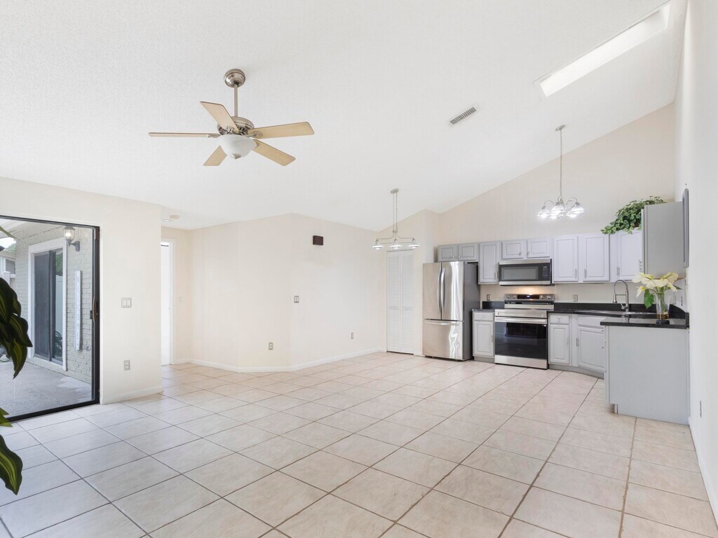 Welcome to your ideal Florida retreat! This beautifully maintained single-story home offers 3 bedrooms, 2 bathrooms, and an expansive fenced-in courtyard. Situated in the highly desirable Westwood Gardens--just steps from the vibrant Alton Shops of Palm Beach Gardens.Inside, you'll love the vaulted ceilings, natural light streaming through the skylight, and tile flooring throughout. The modern kitchen features stainless steel appliances, designer countertops, and ample cabinet space.Step outside into your large private patio (30' x 20'), perfect for entertaining guests, grilling, or enjoying peaceful afternoons in the sun. Additional highlights include:Cable and internet included in rent.Pet-friendly community.Reserved parking space directly in front of the gate