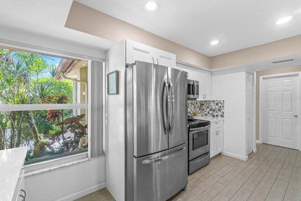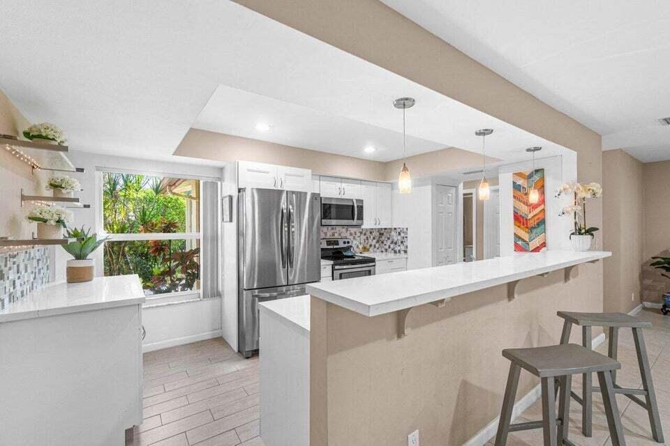 THIS COMPLETELY PRISTINE REMODELED VILLA IS VERY CUTE & COMFORTABLE. THERE IS NEW WHITE FURNITURE IN THE LIVING ROOM & NEW COMFORTABLE BAR STOOLS (not shown in the photos). KING SIZE BED IN THE PRIMARY ROOM & QUEEN SIZE TEMPUR-PEDIC BED IN THE GUEST ROOM. 10 MINUTES FROM BEACHES & DOWNTOWN DELRAY w/ FABULOUS RESTAURANTS, BOUTIQUES & ART GALLERIES! OPEN KITCHEN & BOTH BATHROOMS REMODELED. RELAX ON THE LANAI w/ BEATUTIFUL GOLF COURSE VIEWS, IN THE COOL A/C OR OPEN THE WINDOWS TO ALLOW THE COOL BREEZES. INDIAN SPRING IS A MANNED GATED COMMUNITY & THE VILLA IS RIGHT ACROSS FROM THE OLYMPIC SIZED POOL. COME ESCAPE THE WINTER & ENJOY THE FLORIDA LIFESTYLE!