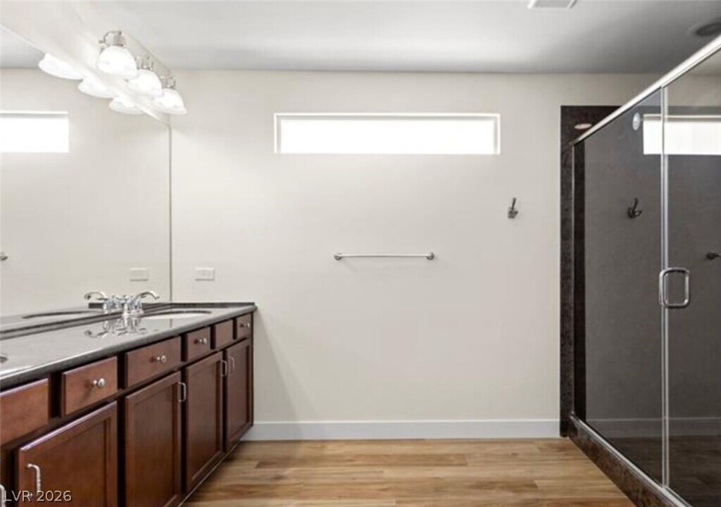 Beautifully completely remodeled Large 3bd 4bath and huge Loft upstairs that can be an office or additional bedroom. The home has new hardwood floors though out . Huge open floor-plan with vaulted ceilings located in Highlands Ranch only minutes away from fabulous Las Vegas Strip, Airport, Chinatown, and much more The house is highly upgraded with granite counters, a center island with a breakfast bar, and upgraded cabinets. All window coverings throughout the house. The primary suite has a walking-in closet. The backyard with low maintenance, a desert landscape, a covered patio plus a putting green for some fun. The house comes with external security rolling shutters. Must see available for immediate move in