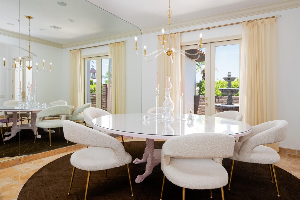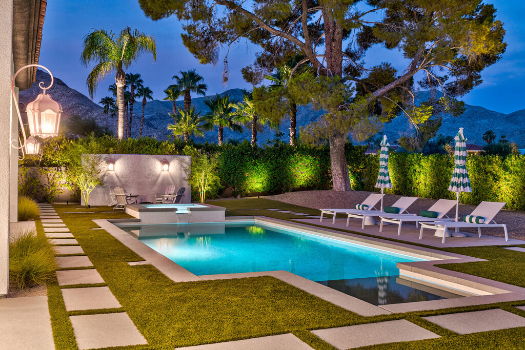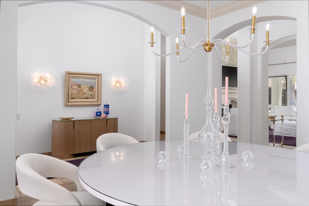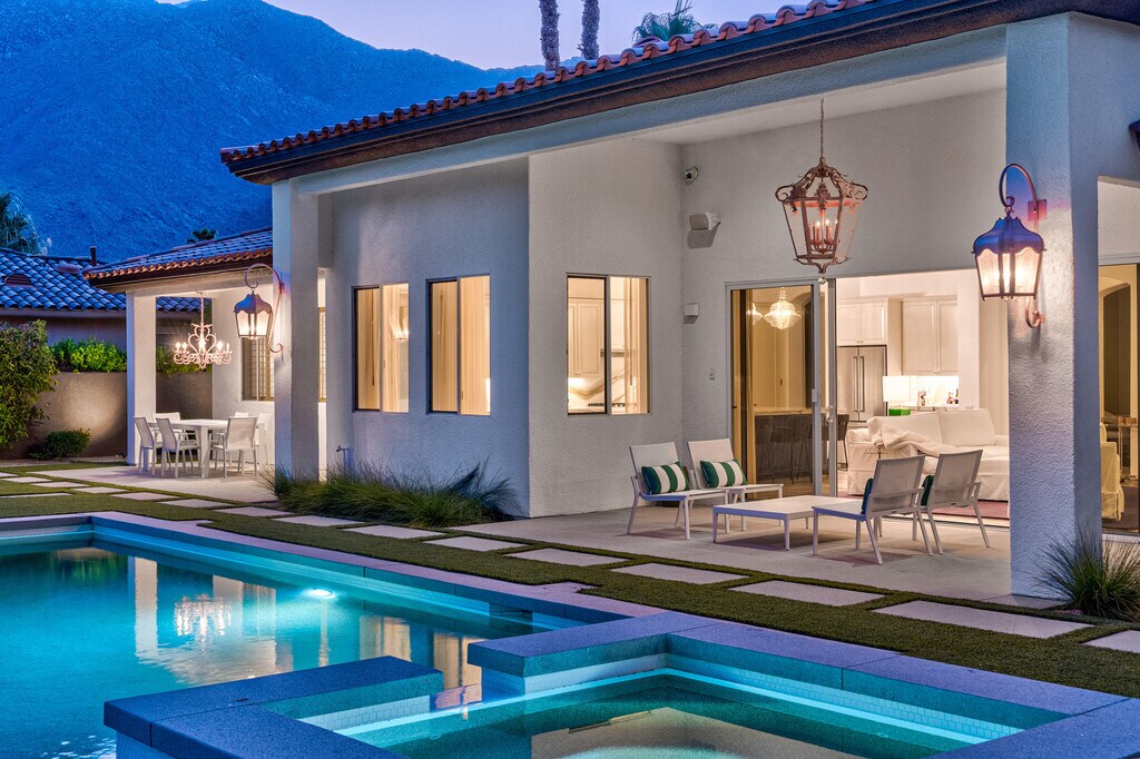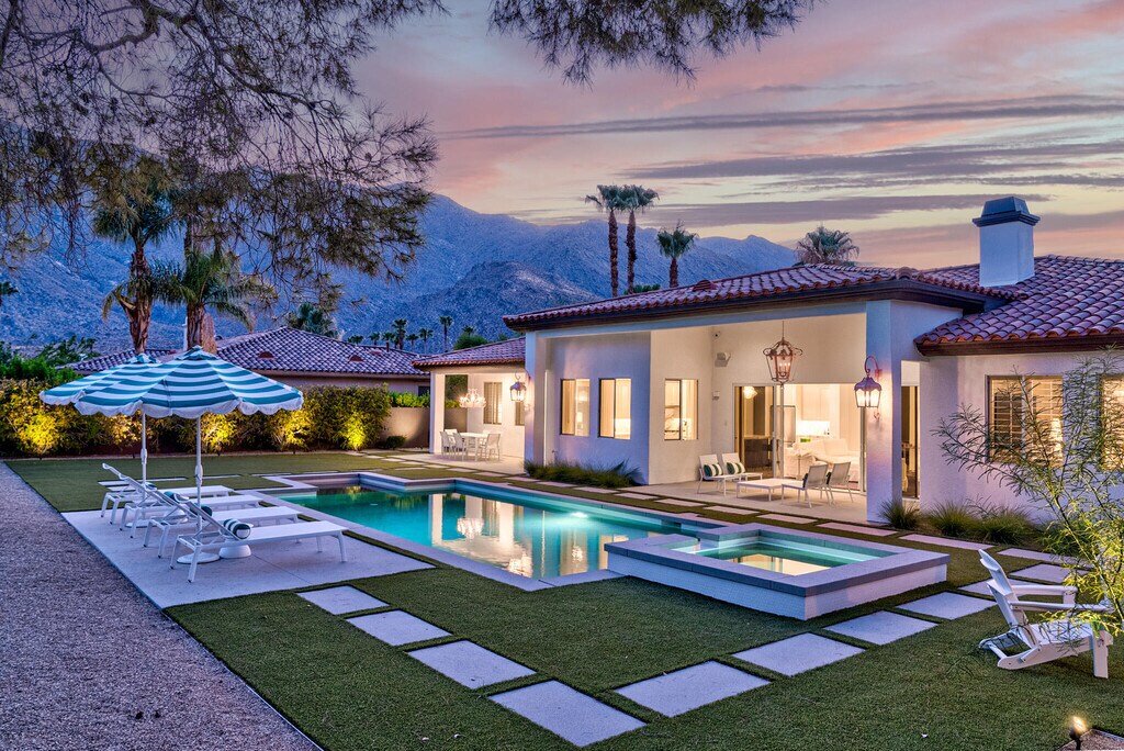 Step into luxury at this stunning Andreas Hills retreat,masterfully designed in collaboration with renowned interior designer,Thomas Troy Homes. Inspired by the glamour of Beverly Hills hotels and the iconic Hollywood Regency style,this 3-bedroom,4-bath residence is the perfect desert getaway. Nestled along the 7th fairway of the prestigious Indian Canyons Golf Course,the home offers an unparalleled blend of sophistication and comfort. With soaring high ceilings and a spacious gourmet chef's kitchen,the expansive open layout is ideal for entertaining or unwinding. The private heated pool and spa provide a serene oasis,while the breathtaking south-facing views of the majestic Palm Springs mountains and lush fairways add to the home's irresistible charm. Whether you're seeking relaxation or adventure,this exquisite home delivers a luxurious escape in the heart of the desert.