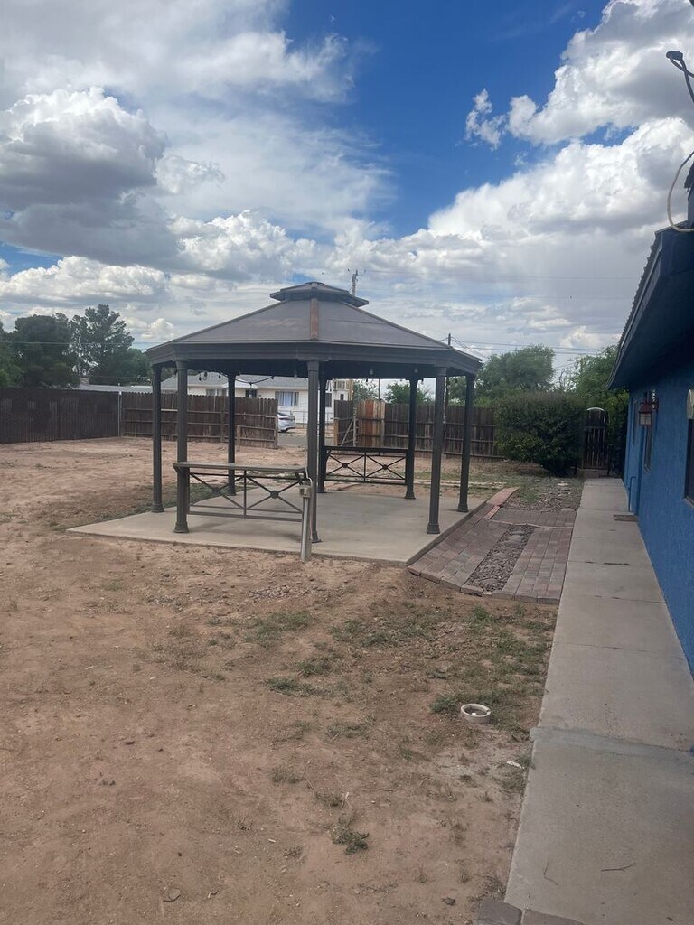 This well-located 4-bedroom, 2-bath home in Benson, AZ, sits on a corner lot in the middle of town and offers a one-car garage and a dedicated laundry room for convenience. Recently refreshed with new paint, the interior includes a separate dining room and two water heaters for added efficiency. Outdoors features a large backyard with a spacious gazebo—ideal for outdoor living and entertaining. Practical layout and central location make this property a functional choice for a variety of needs.