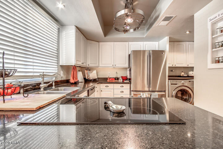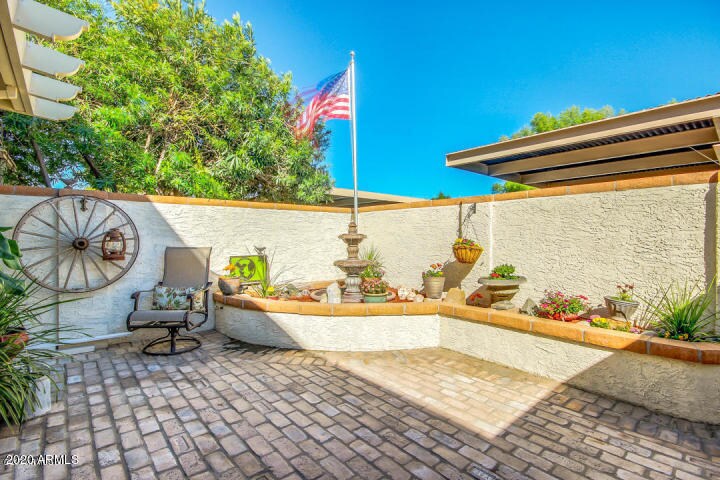 Welcome to this magnificent 3 bed,2.5 bath townhouse in the beautiful Chateau De Vie community in Scottsdale! Located close to Chaparral Park and Old Town Scottsdale this community offers plenty of amenities such as clubhouse,sauna,fitness center,and pool. Step into the remarkable interior with wood floors,plantation shutters,recessed lighting,spacious dining area,and magnificent kitchen with granite counter tops,breakfast bar,beautiful white cabinets,glass cook top,upgraded faucets,and pantry. The upstairs offers a retreat with three beautiful bedrooms and stylish bathrooms. Don't miss out on the backyard with a brick paved covered patio,ceiling fan,and storage shed.