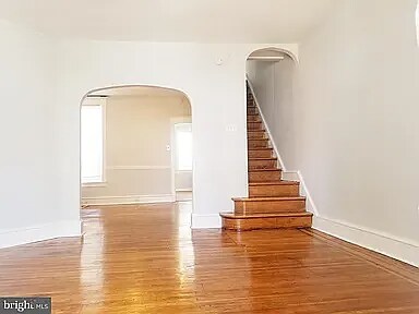 Property Id: 2261910 This refreshed row home features original hardwood floors throughout, creating a warm and welcoming feel. Fresh neutral paint and updated white trim provide a clean, modern backdrop for any style. The main living area offers a bright, open flow with classic arched doorways and a beautiful hardwood staircase. Natural light fills the space, complemented by updated heating radiators with stylish covers that blend charm and practicality. The bathroom, though compact, includes an updated vanity and contemporary fixtures. Situated in a walkable neighborhood, this home offers a convenient and comfortable city-living experience.