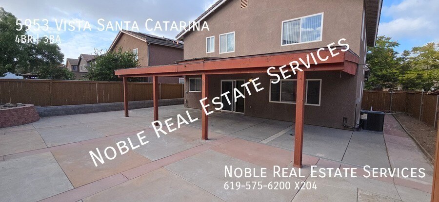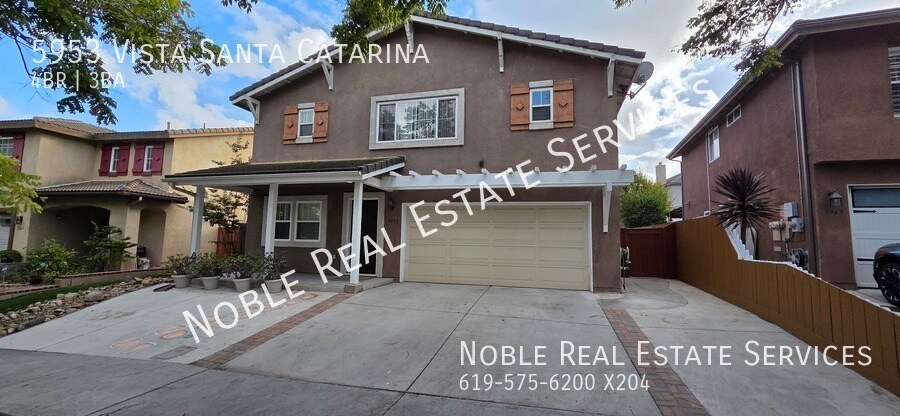 3995.00 Dogs OK Cats OK Pets Ok. (Breed Restrictions Apply) No Yes Deposit: $3995 **On Approved Credit** Welcome to your dream home in the sought-after Vista Pacifica neighborhood—where comfort, convenience, and community come together. This stunning two-story residence offers four bedrooms all on the upper level, providing the perfect balance of privacy and functionality for modern living. The main floor features both a formal living room and a spacious family room, ideal for entertaining or relaxing with loved ones. The two-car garage provides ample parking and storage, while the dedicated laundry room adds everyday convenience. Step outside and enjoy your own private backyard oasis—complete with a low-maintenance concrete patio that’s perfect for outdoor dining, weekend gatherings, or peaceful evenings under the stars. You’ll also love being steps away from a beautiful community park featuring basketball, baseball, volleyball, and a playground—plus a nearby water park and amphitheater for endless family fun and entertainment. ?? Tenant responsible for all utilities. Don’t miss your chance to live in this vibrant, family-friendly community—schedule a tour today and make this beautiful home yours! (**If no showtimes are available, don’t worry! Go ahead and submit your info and our automated system will let you know when showtimes become available). Also, please be sure to click on the 'Apply Now' button to see all of our requirements and how we work! SS 10/16/25 eb No Noble Real Estate Services www.NobleProperties.info 1371 Presioca St. Spring Valley CA 91977 Yolanda, Emily, or Alex Option #1 Closets Garage Kitchen Stove Washer And Dryer Connections