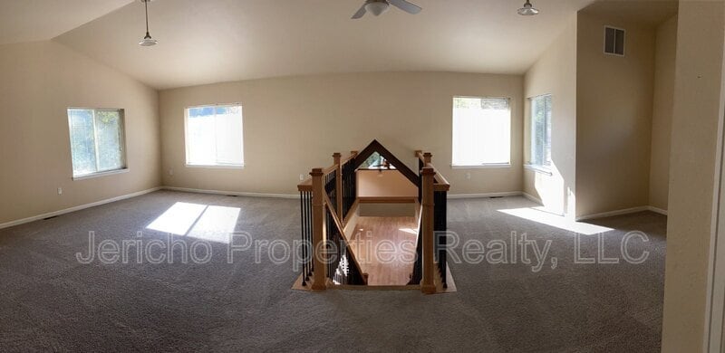 ***COMPLETELY RENOVATED** Large, beautiful living room with vaulted ceilings, gas fireplace and double sliding doors to a great patio for entertaining. Kitchen has stainless steel appliances, kitchen island, black granite counter tops and lots of cabinet space. BIG main floor master with walk-in closet and full master bathroom. Main level also includes large second bedroom, full main bathroom and laundry closet with washer/dryer . Upper level has HUGE loft with vaulted ceilings, 2 large bedrooms and a full bathroom. Large fenced back yard with storage shed and sprinkler system. Located across the street from Ketring Lake with walking paths. BEAUTIFUL HOME – MUST SEE!! Pet Details: All pets must be registered in Pet Screen