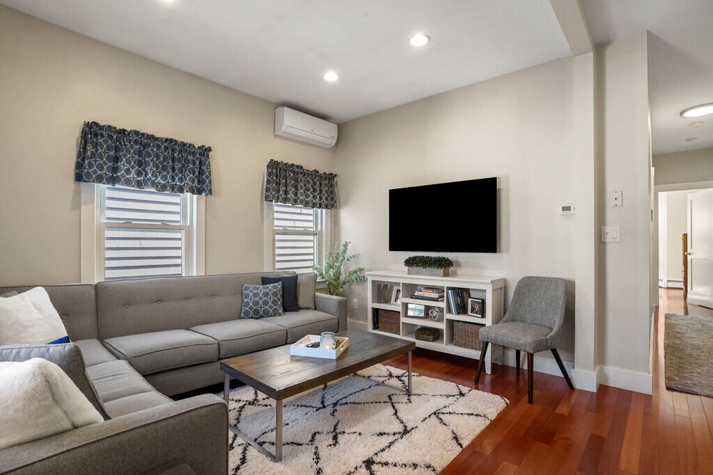 Beautiful East Side condo is available for rent for the first time. This top floor unit offers an open living concept and two large bedrooms. A tastefully renovated kitchen boasts Quartz countertops, stainless appliances and plenty of cabinet space. A center island with seating flows into the large living area. The sun filled primary bedroom is large enough for a king size bed and has an enormous walk-in closet. A second bedroom can easily fit a queen bed as well as a desk or workout area. A modern bathroom with tub/shower combo and abundant storage offers a great place to get ready everyday. This unit also has air conditioning and private laundry. The building shares a large common outdoor space. There is additional storage located in the basement as well. Showings by appointment only. Gas, electric and cable/internet are responsibility of tenants.
