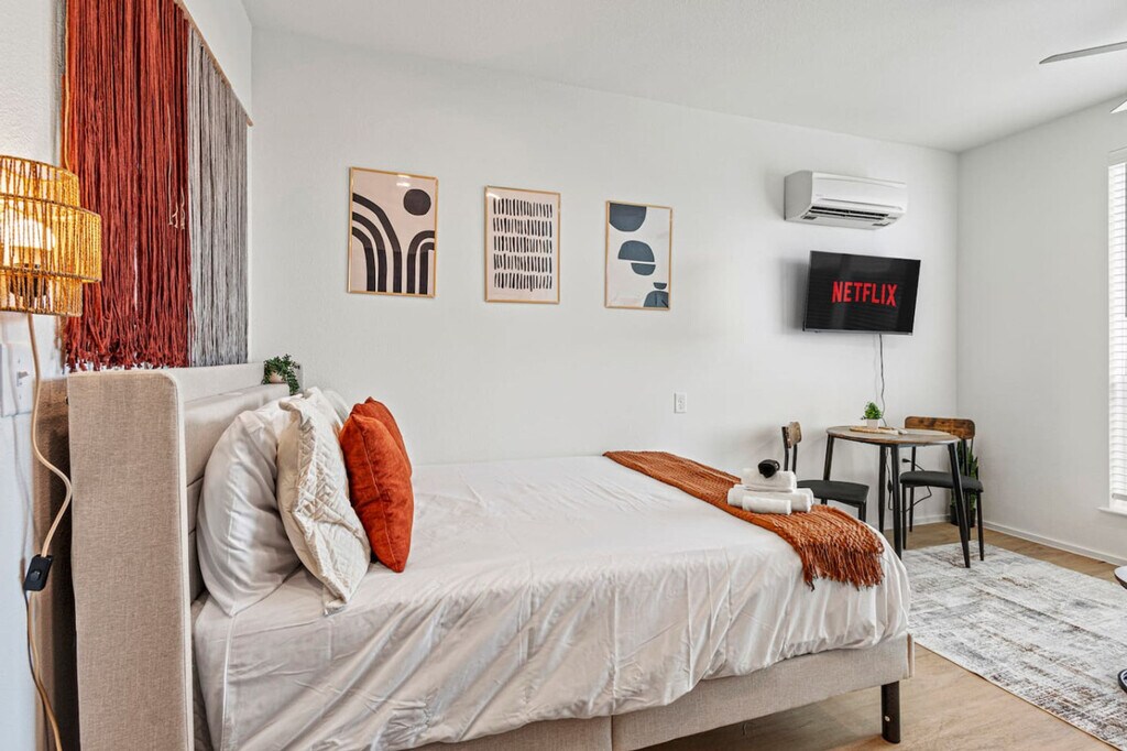 The advertised rate of $2,124/month is the lowest available price, based on a 1 month(s) stay with a move-in date of April 14, 2026. Rates vary depending on the duration of stay, season, and other parameters. For exact pricing and additional pricing components, please visit our website and enter your desired move-in and move-out dates. The rate is applicable when billed upfront; it can be higher if billed in multiple payments. Feel at home in this stylish suite in the Bishop Arts District, crafted for comfort and ease. This modern space features a fully stocked kitchen, in-unit washer/dryer, and a 40-inch Smart TV with streaming services. The kitchen includes a coffee machine, kettle, tea bags, spice rack, toaster, oil, salt, sugar, cookware, utensils, plates, glasses, and basic cooking supplies. The bathroom offers a full-sized shower with shampoo, conditioner, body wash, fresh towels, washcloths, hand towels, and a hairdryer. Enjoy central A/C and heating for year-round comfort. Complimentary garage parking is available for one vehicle, and visitor parking is available for extra vehicles. Located in the trendy Bishop Arts District, this apartment is within walking distance of boutiques, restaurants, bars, and galleries. Downtown Dallas is approximately 7 minutes away, and the Kay Bailey Hutchison Convention Center is about 8 minutes away. The American Airlines Center, Perot Museum of Nature & Science, Klyde Warren Park, Dallas Zoo, and Dallas Love Field Airport are all within a 15-minute drive. Quiet hours start at 11 pm and end at 7 am. No pets are allowed; evidence of pets inside the property will result in a $150 fine charged to guests. No parties or large noisy social gatherings are permitted; there is a $500 surcharge charged to groups that are deceitful about the use of the house, and guests partying will be asked to vacate the property immediately without refund. No smoking or vaping is allowed indoors; any cigarette butts are to be disposed of off the property, and there is a $500 fine for violations. A surcharge of $100 per undeclared guest per night will be applied for unapproved guests, with no more than 3 people staying at the apartment. There is a $200 charge if either the fob or parking pass is not returned to the lockbox. [SI]