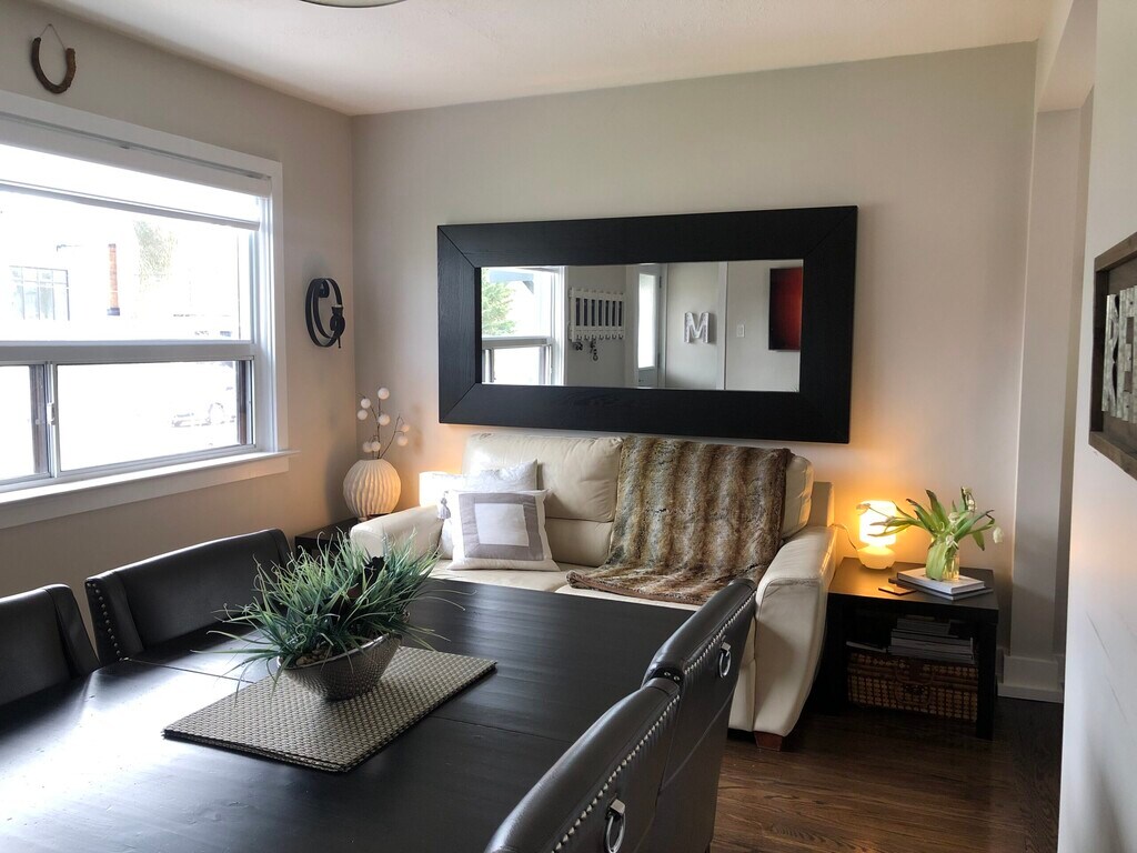 OVERVIEW Beautifully appointed TWO BEDROOM, 1 bathroom Main & Upper suite in a cozy sun-filled duplex situated in Lakeview, Mississauga mere steps to the BEACH and WATERFRONT trails! Cottage living in the City! Rent: $2,895/month UNFURNISHED plus utilities (~$175/month based on personal consumption) Square Footage: ~750 Sq.ft (Unverified, please bring your tape measure!) Availability: IMMEDIATELY! Laundry: Hook ups available or option to assume current appliances Parking: 1 driveway spots included Pets: While no pets are preferred, great pet owners are negotiable! THE SPACE Step into your beautifully renovated home and be wowed by the lovely finishes! Gorgeous original dark hardwood floors enhance the space, while upscale light fixtures add a definite “edge”. Light pours in through your large living room and kitchen windows enhancing the space even more. Hang up your coat in your main floor closet, and kick off your shoes –you’re home! Take in the great layout of your lovely open-concept space! Your kitchen comes with gorgeous stainless steel appliances and ample shaker style wood cabinetry with designer hardware. Your laundry hook ups are also in the kitchen space making chores a breeze. Bring your own appliances or you have the option to assume the current ones. In your living space, there’s tons of light, streaming in from your picture-perfect window and plenty of room for a full furniture set. This is why you will love the space –it’s as functional as it is beautiful! Up your dark hardwood staircase, you’ll find two bedrooms (big enough for queen beds!) brimming with charm and character. With gorgeous light fixtures and plenty of closet and storage space, these rooms are the perfect oasis at the end of a long day. Your bright bathroom has been finished to perfection, with more detailed finishes and a feeling that echoes a hotel spa! Enjoy the tree canopy in your front yard or step into your huge, grassy back yard, perfect for a BBQ, relaxing and entertaining in your own separate area. THE NEIGHBOURHOOD This wonderful gem of a neighbourhood is nestled right next to Port Credit, and sits right on the edge of a lovely community beach right on Lake Ontario! Boasting huge and leafy shade trees and wonderful waterfront trails, this area is perfect for jogging, biking or strolling, and enjoying sun rises over the lake! Homes in this community sit on large, mature properties, and are set well back from the street. Steps from the Lakeshore Waterfront Trail, you are close to the RK McMillan Park and Adamson Estates where the parks and bike/running/roller blading are just waiting for you. Minutes from Mississauga’s Waterfront Entertainment area in Port Credit, there are dozens of spectacular and well-reviewed restaurants, shops, cafes & entertainment. CONTACT US Call or text the Oro team today for a showing: