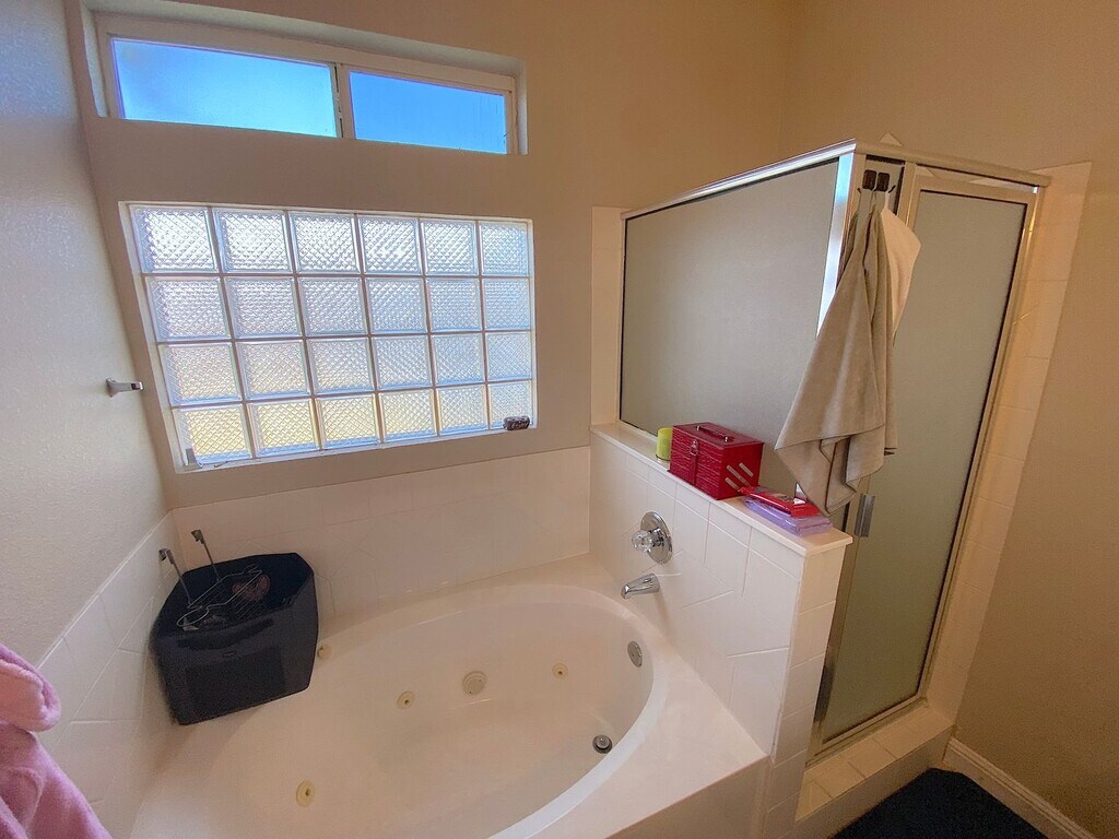 Northeast El Paso 3 bed/2 bath home with REFRIG A/C and solar panels conveniently located close to schools, parks with quick access to Ft. Bliss. Ceramic tiling and wood shutters throughout home. Spacious kitchen with lots of counter/cabinet space overlooks the dining area and family room. Large master ensuite with walk in closet, double sink bathroom with separate garden tub and shower. Backyard offers covered patio with stampeded concrete deck and custom high fencing for added privacy, but still allows for mountain views. Residents are enrolled in the Resident Benefits Package (RBP) which includes liability insurance, credit building to help boost the resident’s credit score with timely rent payments, up to $1M Identity Theft Protection, HVAC air filter delivery (for applicable properties), move-in concierge service making utility connection and home service setup a breeze during your move-in, our best-in-class resident rewards program, and much more!