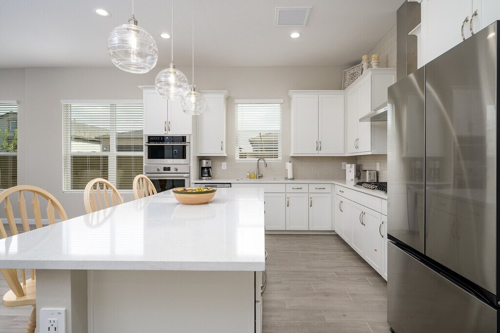 Casa Tierra is a charming 3-bedroom, 2.5-bathroom single-family home located in a gated neighborhood in the highly desirable Desert Ridge area of northeast Phoenix. This single-level home offers the convenience of no stairs and features a fully gated yard, a 2-car garage, and a spacious and bright interior with TVs in all bedrooms and the living room. The home is designed for comfort and entertainment, featuring a king-size bed with an attached bath, walk-in shower, dual vanity, and walk-in closet. The living room and all bedrooms are equipped with TVs, and the property includes a laundry room with a full-size washer and dryer. Enjoy the outdoor gas fireplace and BBQ grill in the backyard, and take advantage of the community's heated pool and gym, all brand new. The property allows one dog with a non-refundable pet fee, which will be added to your booking. The community offers a heated pool and gym for your enjoyment. Conveniently located just minutes from Loop 101 and Highway 51, Casa Tierra offers easy access to the Desert Ridge Marketplace and High Street, known for their vibrant nightlife, dining, shopping, and entertainment options. The JW Marriott Spa and Wildfire Golf Course are also nearby, and Mayo Hospital is just a 5-minute drive away. Guests are liable for any damages caused to the property. The property is available for monthly rentals only. All linens, bath, and pool towels are provided, and free Wi-Fi is available throughout the home. [SI]