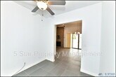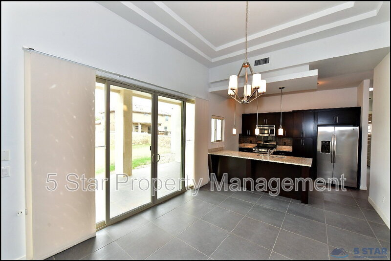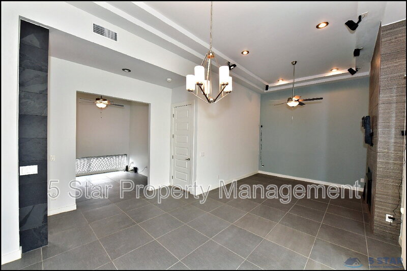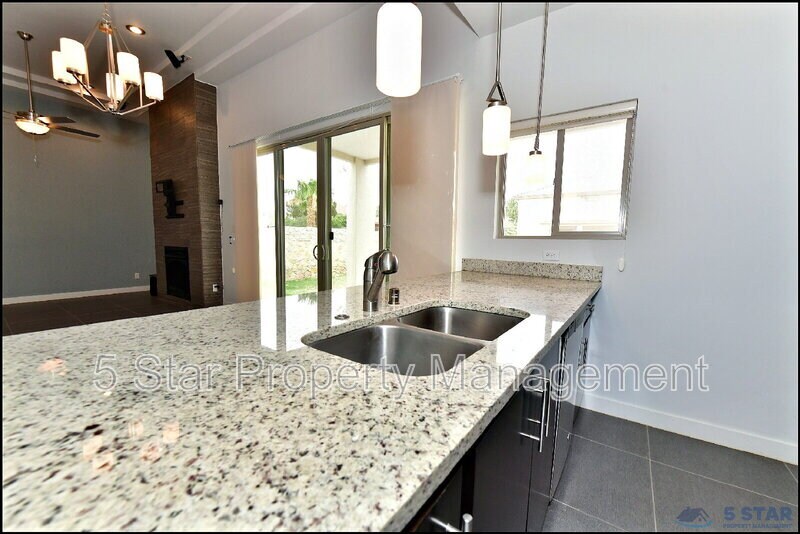 Clean lines, open living space, and modern finishes define this Westside home. Large gray tile carries through the interior, pairing with tall ceilings, recessed lighting, and wide living areas that feel bright and connected. The kitchen stands out with dark cabinetry, granite countertops, a long island with sink, and stainless appliances that include a refrigerator, gas range, microwave, dishwasher, and disposal. The floorplan includes two bedrooms, two full baths, and a converted garage that adds valuable flex space for a media room, office, workout area, or guest setup. Outside, the covered patio extends the living area into a walled backyard with room to spread out. Central air, thermal windows, and a tankless water heater add everyday functionality, and even a mounted flat-screen TV is included. Westside location offers easy access to I-10, shopping, dining, and nearby outdoor recreation. Deposit-Free Renting service to Obligo qualified renters, fees may apply. For Showings information and availability, please call at By: 5 Star Property Management | EL PASO Texas Rentals | EL PASO Property Management | Property Management in EL PASO *Important: Information is deemed reliable but not guaranteed. All information is submitted subject to errors, omissions, change of price before the lease, or withdrawal without notice.