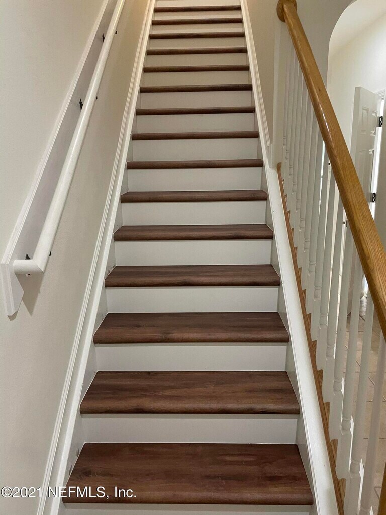 BEAZER FORMER MODEL,tons of upgrades!! lakeview/Preserve,private setting,screened lanai. Upgraded waterproof luxury laminate all throughout,corean tops,42'kitchen cabinets,all appliances. Close to Baptist Hospital,walking distance to shopping center,20 minutes to the beach,20 minutes to historic St. Augustine. Upstairs is Two large Owner's Suites,2 full baths,and laundry room. MLS# 2115561