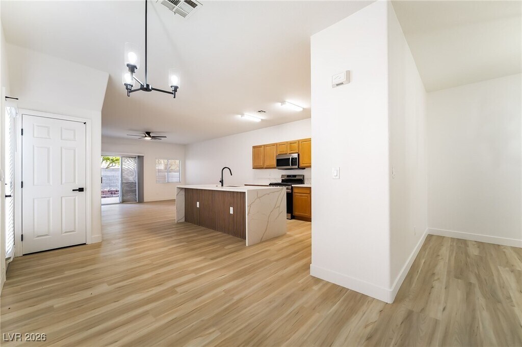 Beautifully Remodeled Home in Desirable Gated Community. Welcome to this stunning, completely remodeled home featuring 4 spacious bedrooms, 3 full bathrooms, and a 2-car garage, located in a sought-after gated community. This home showcases brand-new flooring, modern lighting, fresh interior paint, and elegant countertops throughout. The gourmet kitchen is a true showstopper, boasting an oversized quartz island, sleek stainless-steel appliances, and ample space for entertaining. All four bedrooms are generously sized, each equipped with ceiling fans for added comfort. The low-maintenance backyard features synthetic grass, perfect for relaxing or entertaining year-round with minimal upkeep. community amenities including a gated entrance, basketball court, kids’ splash/water play area, and a sparkling pool with spa. This home is truly move-in ready and an absolute must-see!