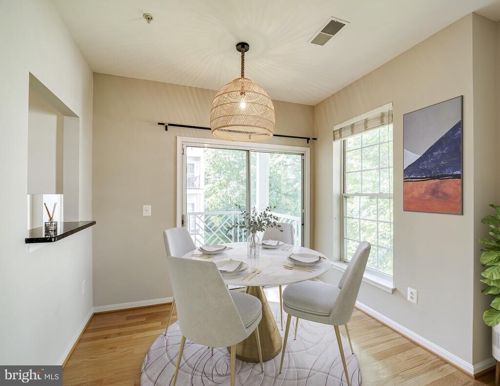 Welcome to Founders Walk! This light-filled 2 bedroom, 2 bath home has beautiful hardwood floors throughout with tiling in both bathrooms. When you walk through the entry hallway, you step into the living room that flows around to the kitchen, dining room, and additional den area all of which have access to the balcony. The kitchen has sleek black countertops, appliances, and white cabinetry. On either side of the home, is a spacious bed and bathroom. The main bedroom has a luxurious soaking tub, separate from the shower and extended vanity. Washer and dryer in unit. One resident and one visitor parking space. Quick and easy access to 395/495, and Van Dorn Metro Station. 10 minutes to Kingstowne and all its shopping as well as minutes to other grocery stores and restaurants.