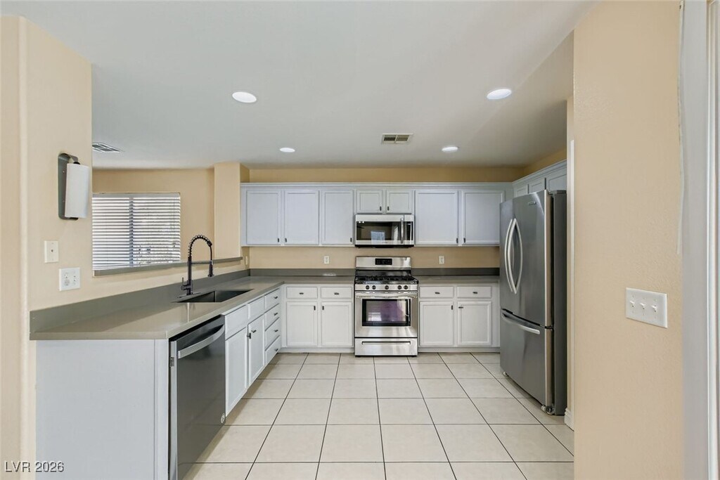 Great 2 story home located in the SW of Vegas. Corner lot with open floor plan. Newly remodeled kitchen features quartz countertops, stainless appliances, pantry, tile flooring & breakfast bar. Wood laminate flooring throughout. Separate family room from living/dining room. Primary bedroom with walk in closet, dual sink vanity & separate tub & walk in shower. Large, oversized 4th bedroom can easily be used as an upstairs loft if additional bedroom not needed. Laundry closet upstairs. Low maintenance yard with faux grass is a blank canvas for your vision. Conveniently located near freeway access and shopping! Trash & Sewer Included!
