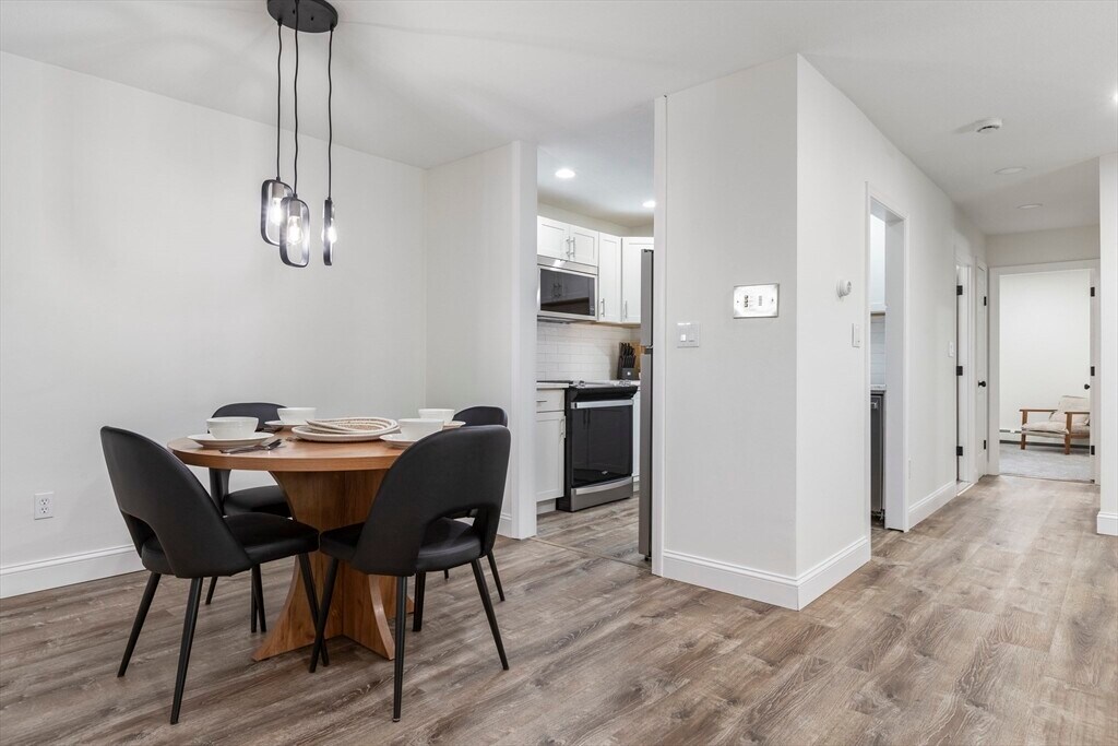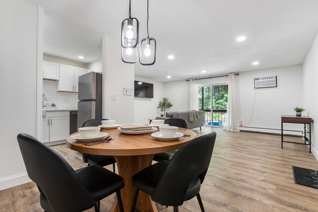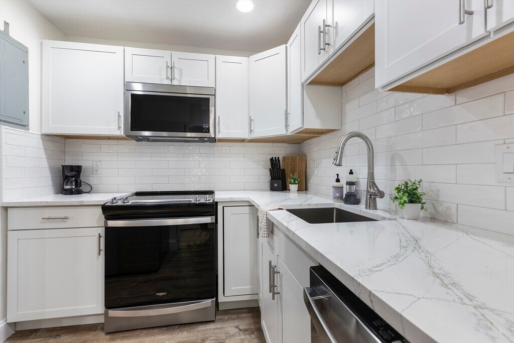 Welcome to your home away from home! This beautifully renovated 2-bedroom,1-bath condo comes fully furnished with everything you need for a comfortable stay. The unit has been thoughtfully updated with modern finishes and stylish dcor,creating a warm and inviting atmosphere.Features include: Spacious living area with comfortable seating and smart TV,Fully equipped kitchen with updated stainless steel appliances,cookware,and dining essentials. Two bedrooms,including a primary suite with a Tempur-Pedic mattress and adjustable reclinable bed frame for ultimate comfort. Desk space in the living room is perfect for working from home. Modern bathroom with walk-in glass shower,updated fixtures and finishes,dining room,Balcony overlooking the parking lot,and coin-opp laundry in the building for added convenience.This condo is move-in ready and perfect for traveling professionals,extended stays,or anyone looking for a turnkey furnished rental. MLS# 73442803