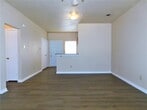One-story two bedroom duplex in Little Elm. Wood-look floors in the living room and kitchen with carpet in both bedrooms. Large backyard with an uncovered patio. Refrigerator Included.