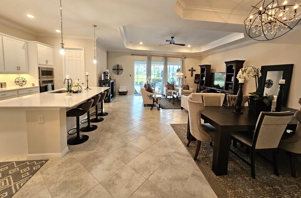 . On Season Price: $9,995 Off Season Price: $6,995 Stunning 3+den, 3 full baths, "Maria" model w/ heated pool, heated spa and outdoor kitchen. Beautifully decorated and awaiting your seasonal rental and/or vacation needs. The National Golf & Country Club offers NO GREEN FEES w/ the transfer of golf amenity, only $30 golf cart rental to play golf! This is Ave Maria's premiere location and the only 24/7 manned and gated security community. Besides golf, enjoy Pickle ball, Tennis, Fitness Center and Spa and soon to open Resort Pool and Outdoor Bar and Grille. $150 initial application fee reserves the property. $100.00 golf transfer fee (OPTIONAL) and $150 HOA amenity transfer (MANDATORY). $1000 refundable security deposit if returned w/ normal wear/tear only except for $295.00 departure cleaning fee. The house has every amenity, multiple TV's, fully stocked kitchen/baths, ceiling fans, extra lighting, window coverings and so much more. Even an office for you to work in. Landlord requests NO PETS please. Don't delay! You won't want to go home! Price already includes the 11% "hotel tax".