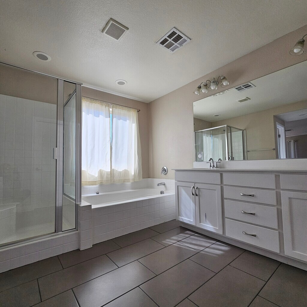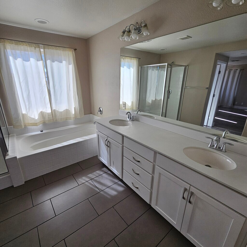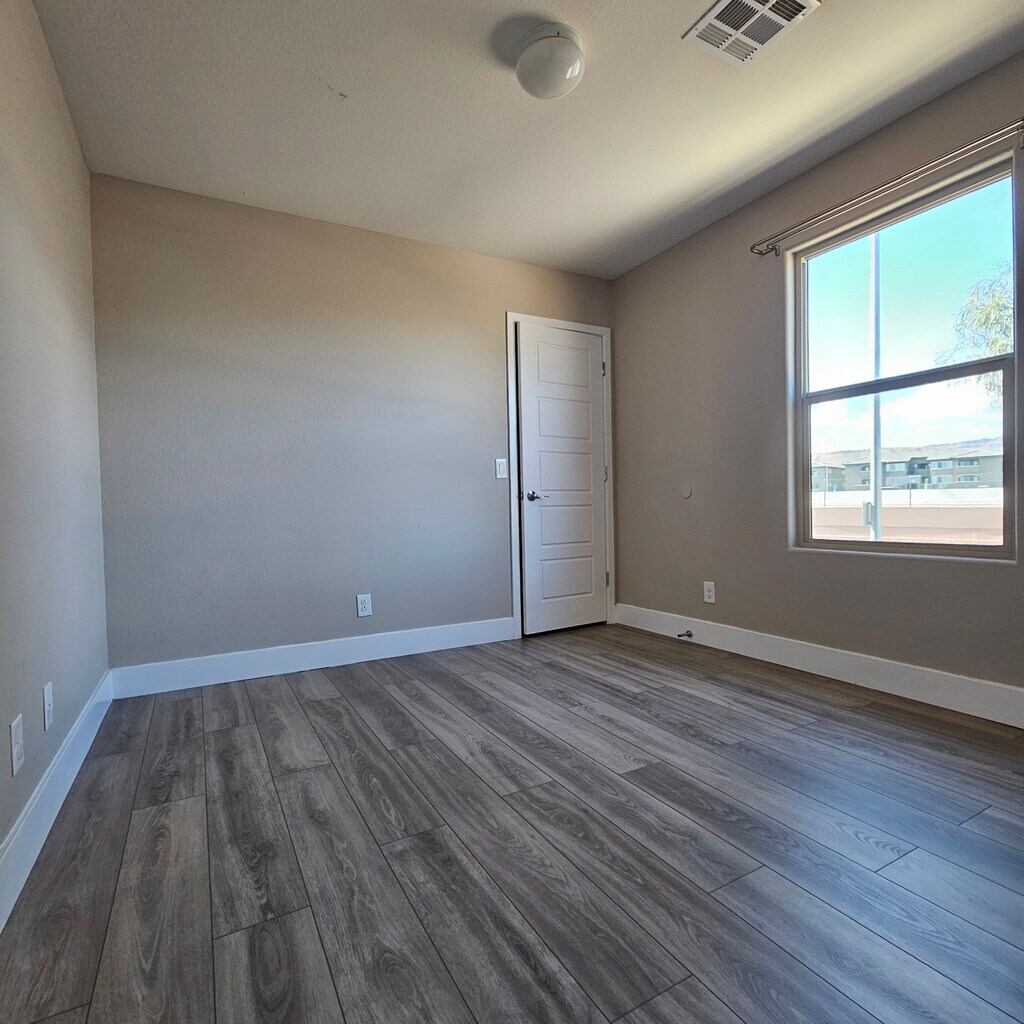 Lease directly from the owner and enjoy this beautiful home in a highly sought-after Southwest location within a gated, newer community. Tucked away at the end of a quiet cul-de-sac, the property offers exceptional convenience with the I-215 freeway just 30 seconds away at the West Russell exit. This spacious two-story home features 4 bedrooms and 3 full bathrooms, including a bedroom and full bath on the first floor, plus an upstairs den. With approximately 2,400 square feet of living space on a generous 10,000-square-foot lot, there is plenty of room to live comfortably. The home comes with all appliances, a two-car garage, and no carpet anywhere for easy maintenance and a clean, modern feel.