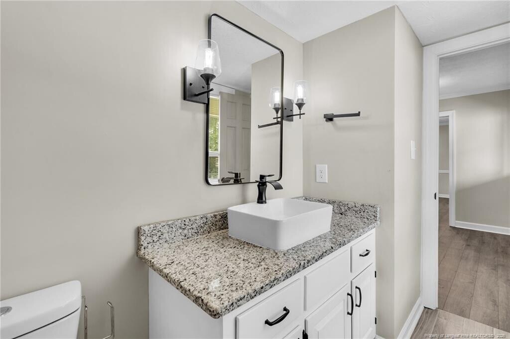 Located in Duck's Landing. Well-maintained 4BR/2.5BA home on a cul-de-sac lot in the Jack Britt school district. Functional layout with multiple living areas, updated kitchen with granite countertops and stainless appliances, and a spacious living room with fireplace. Upstairs features all bedrooms including a primary suite with private bath. Neutral finishes throughout. Enjoy a large back deck overlooking a private, tree-lined yard. Single-car garage and extended driveway for additional parking. Located in a quiet neighborhood with access to a community lake for fishing and canoeing, and convenient to schools, shopping, and Fort Bragg. Small pets considered on a case-by-case basis with owner approval. Tenant responsible for utilities and lawn maintenance. Will consider a 6-month lease. Must apply using the rental application of the property management company - no third-party applications.