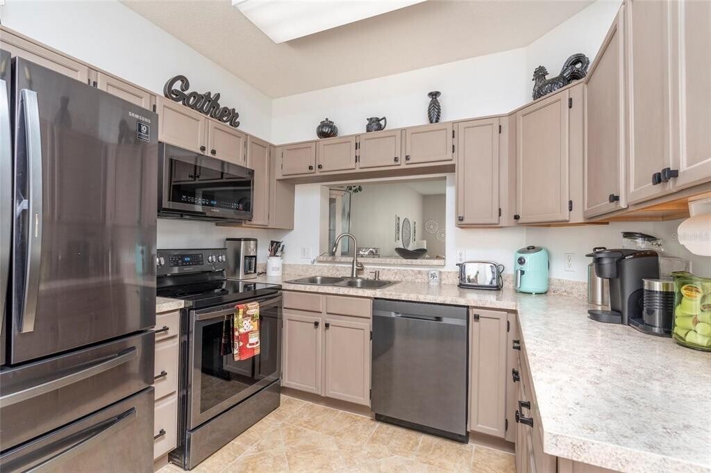 Property located in the resort style community of Ventura Country Club. Amenities include 24 hour security patrol,18 hole golf course,clubhouse,resturant and bar,fitness center,Olympic size pool,and tennis court. Located just 5 miles North of the airport. 25 minutes from major attractions and 45 min from Cape Canaveral. This condo features a unique 3 bedroom floor plan with all rooms located on the first floor,also comes with private garage,absolutely NO STAIRS. Beautifully maintained,newer stainless steel appliances,and remodeled kitchen. This is an end unit which backs up to a preserve area. Condo is partially furnished. MLS# O6354922