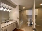 3 Bedroom, 2.5 Bath in Ridglea Country Club Estates. Cozy galley kitchen with black and stainless steel appliances; including built-in microwave and refrigerator. Master Suite, Living & Dining room combo, half bath downstairs. Two bedrooms with stackable washer and dryer, jack & jill bath upstairs. Laminate wood flooring throughout and lots of storage. Private fenced patio that leads to a two car rear entry garage. Just minutes away from Restaurants, shopping and easy access to I-20 and the Chisholm Trail Tollway