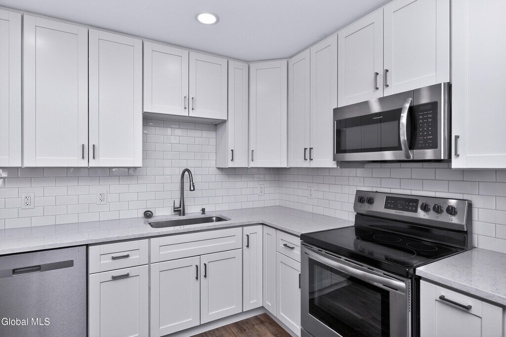 Luxurious 2BR w/ high end amenities throughout. Easy 1st floor living featuring an open Great Room showcasing an outstanding kitchen w/ white cabinetry and quartz counter tops and large center island for casual dining and food prep. Two spacious BR's w/ generous closet space. Plenty of room in the beautiful full bath w/tub and shower. Contemporary light fixtures and flooring. Laundry room w/ washer and dryer for your convenience. Exterior amenities: ample parking,picnic tables and bike racks. Easy to show rental. Newly constructed 3 unit apartment building 2026. No Pets,No Smoking. MLS ID 202613014