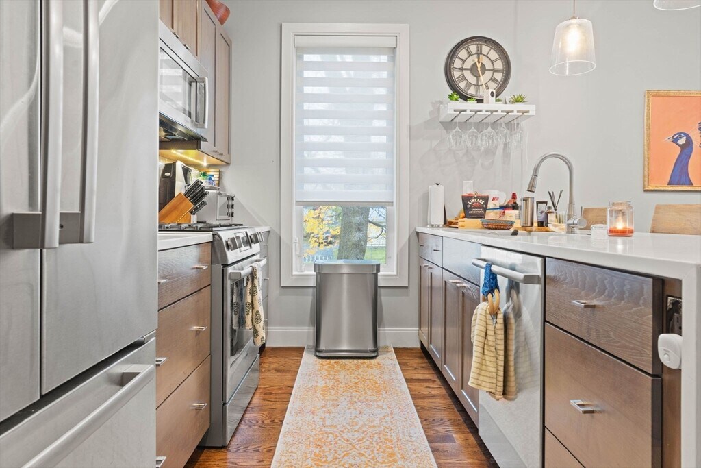 Available 1/1–9/1 with option to renew! Gas AND water included in rent. Stunning newer construction 2 Bed / 2 Bath Clam Point rental featuring garage parking,deeded storage,and a GYM in the building. The spacious open concept living area leads to a private balcony with a gas lined grill included,perfect for cooking or entertaining. The kitchen offers quartz countertops,stainless steel appliances,and a flex space ideal for a home office or dining nook. The primary suite includes a walk in closet and a spa style bathroom with a rain shower and radiant in floor heating. A generous second bedroom and full second bath complete the layout. Additional highlights include in unit laundry,an electric fireplace,and a Bluetooth enabled sound system. Easiest access to I-93 and just a short walk to the Red Line. MLS# 73458258